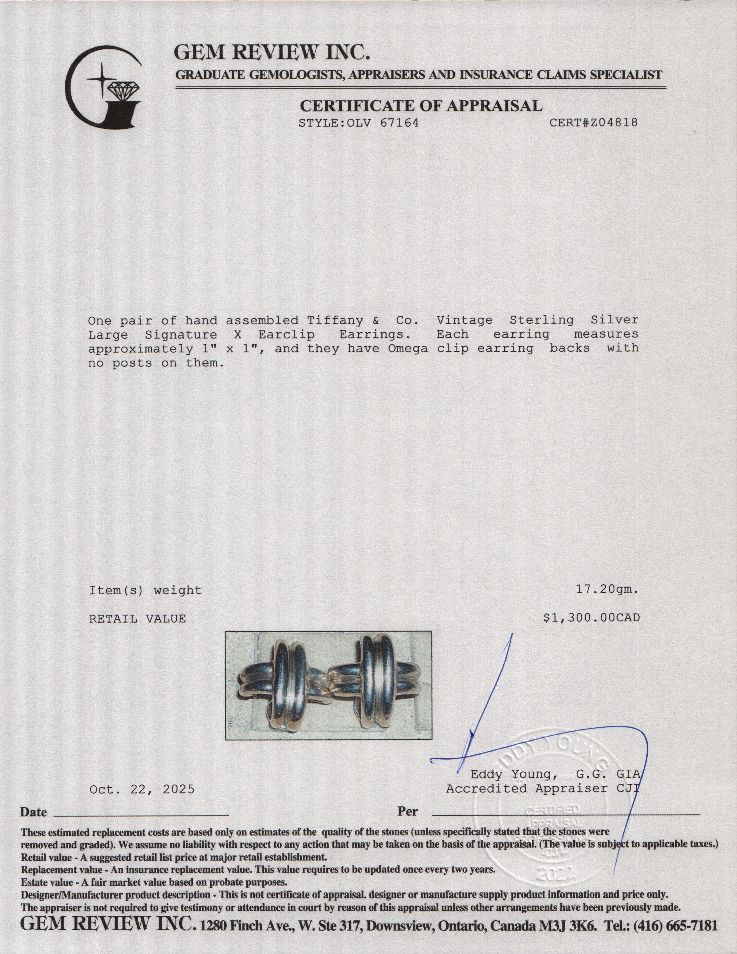 Vintage Sterling Silver Large Signature X Earclip Earrings