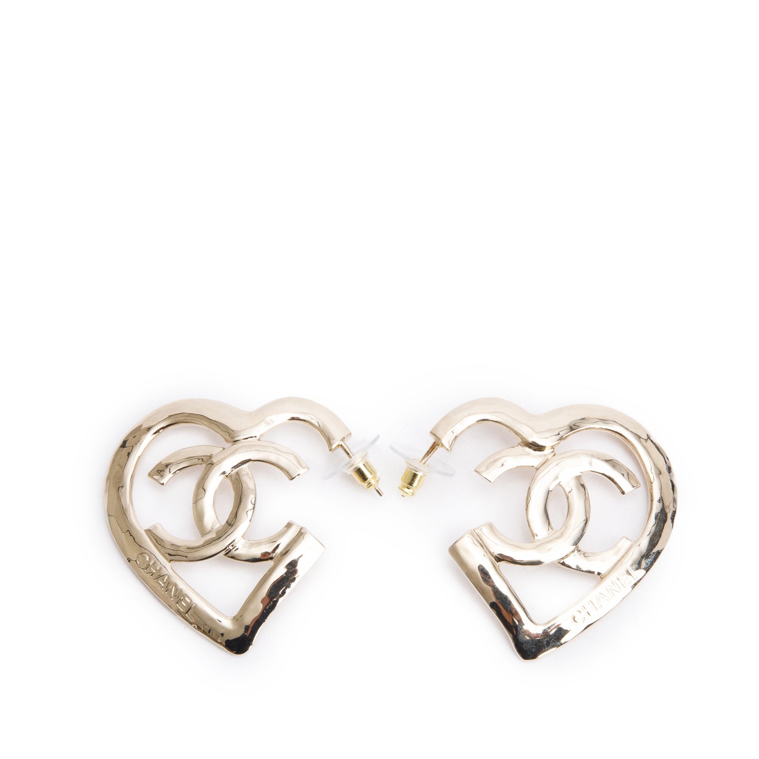 2022 Gold-Plated Heart CC Hoop Earrings w/ Box