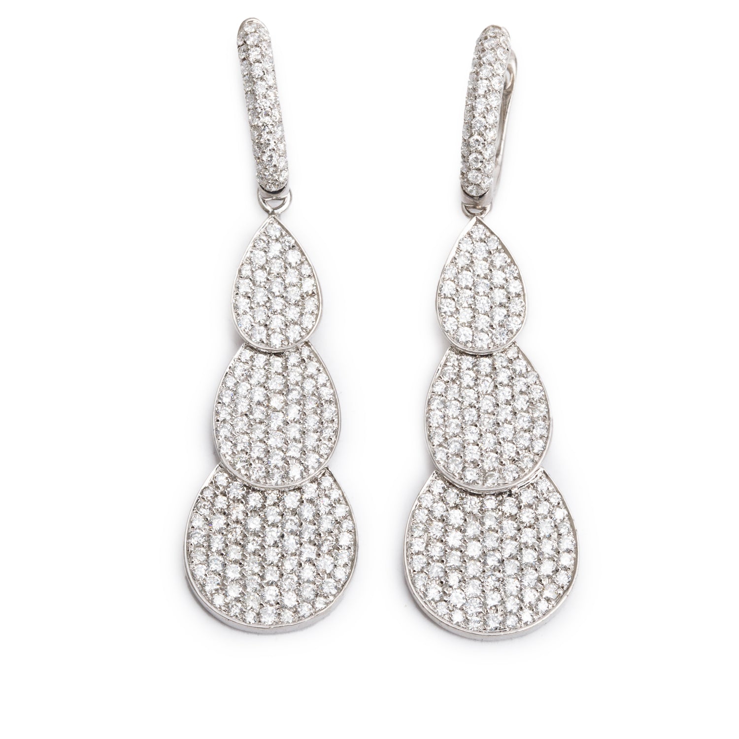 18k White Gold 3.86 tcw. Pave Diamond Drop Earrings