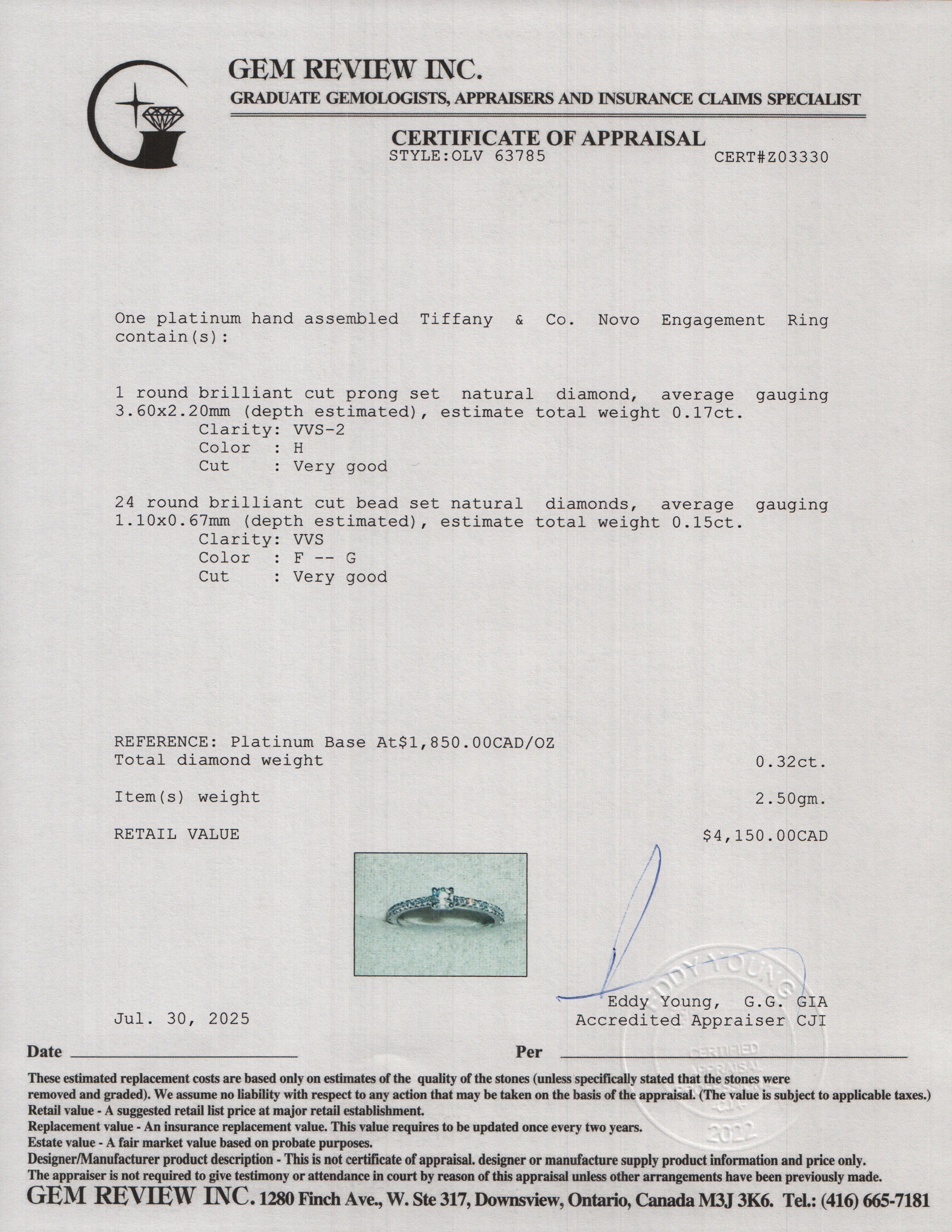 Platinum 0.17 ct. Diamond Novo Engagement Ring, Size 5.5