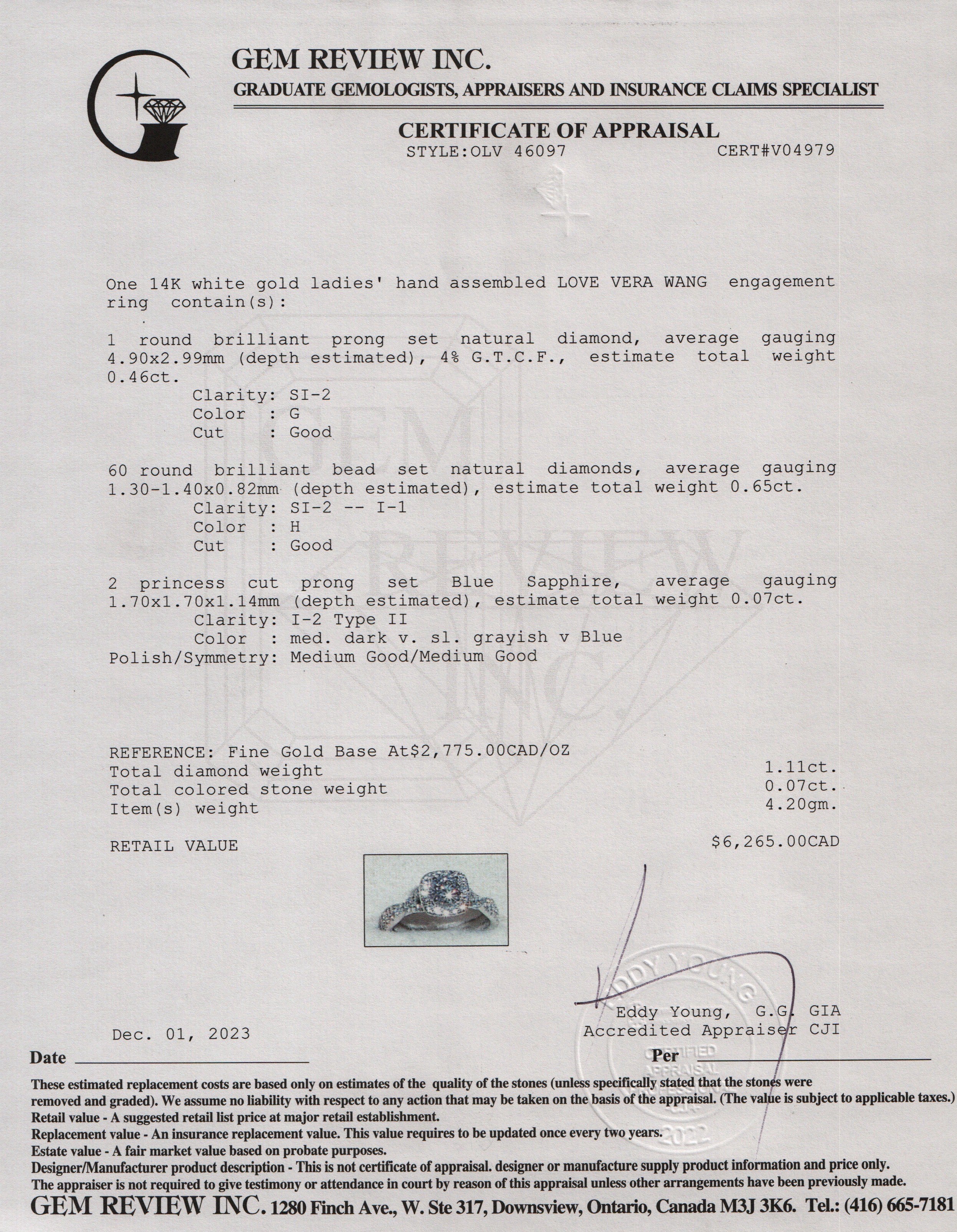 14k White Gold Love Diamond Engagement Ring, Size 6.5