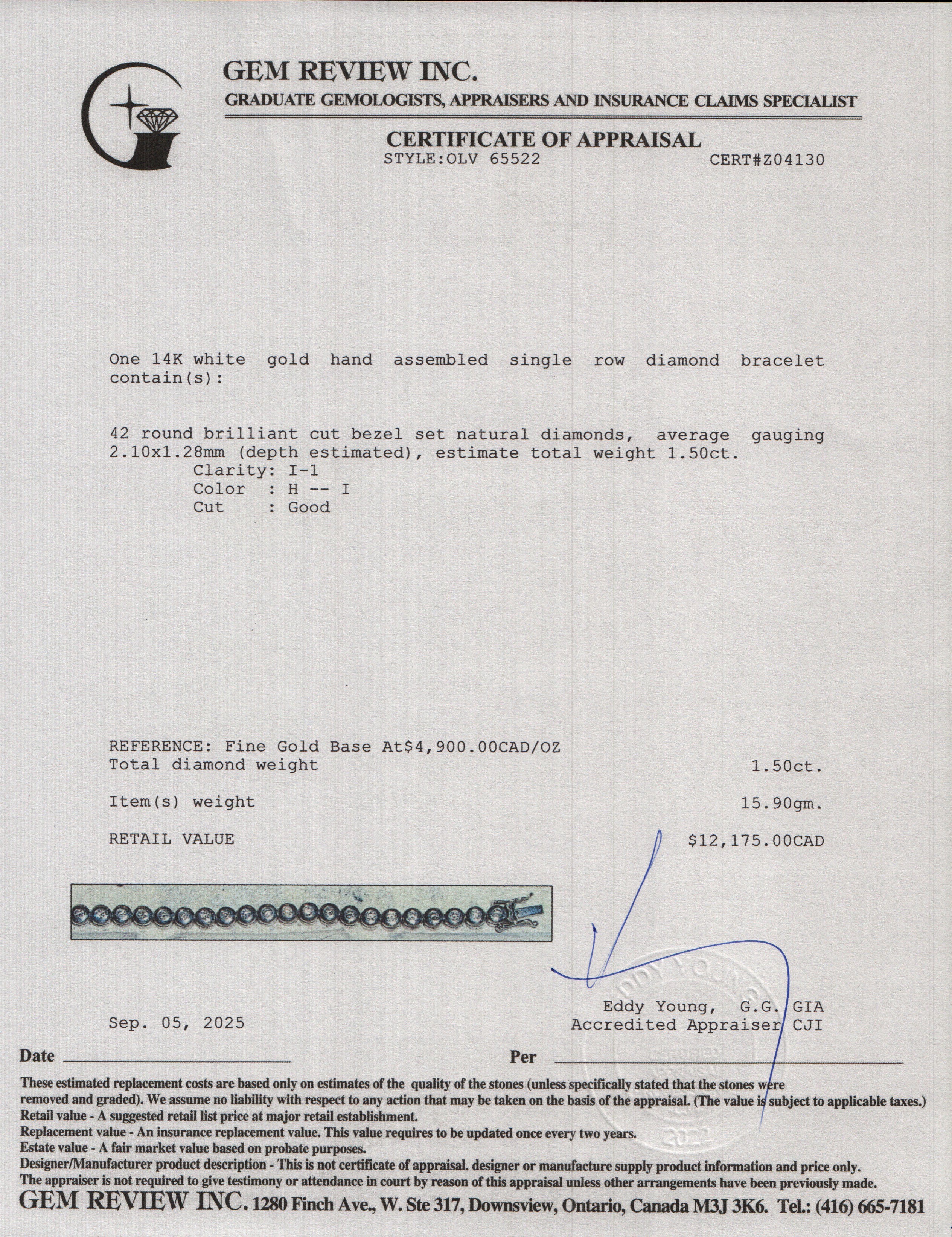 14k White Gold 1.5 tcw. Diamond Tennis Bracelet