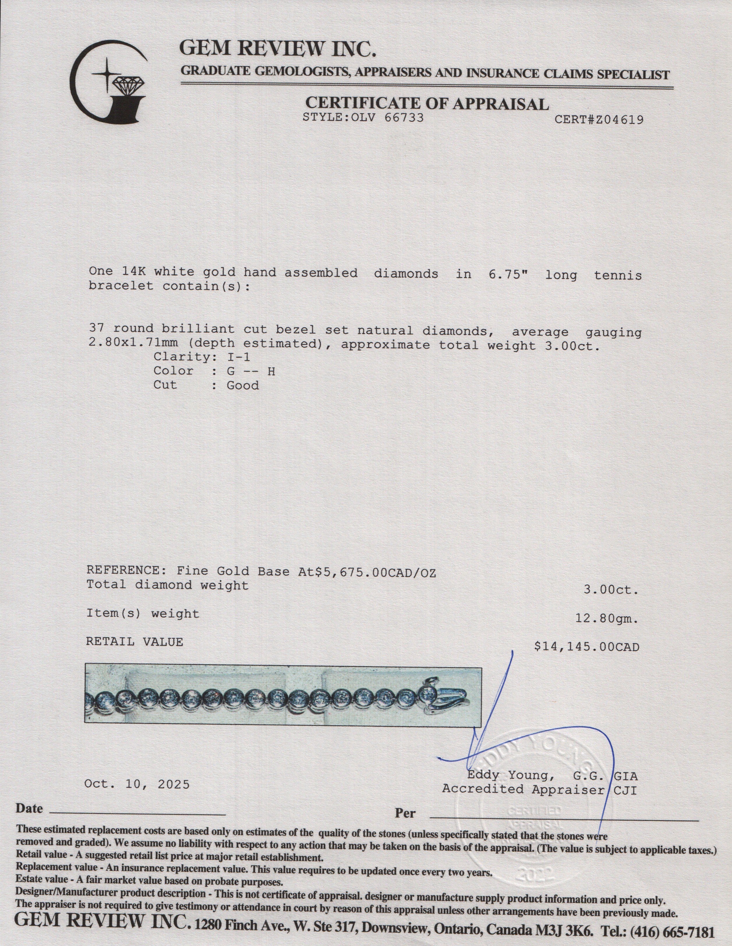 14k White Gold 3.00 tcw. Diamond Tennis Bracelet