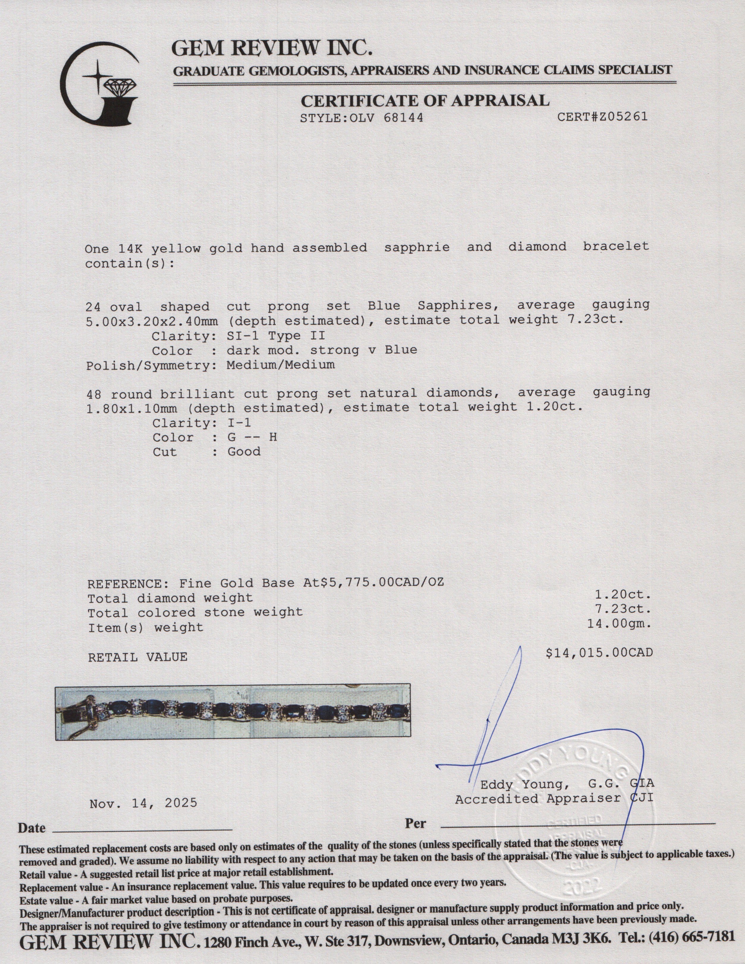 14k Yellow Gold Sapphire & Diamond Bracelet