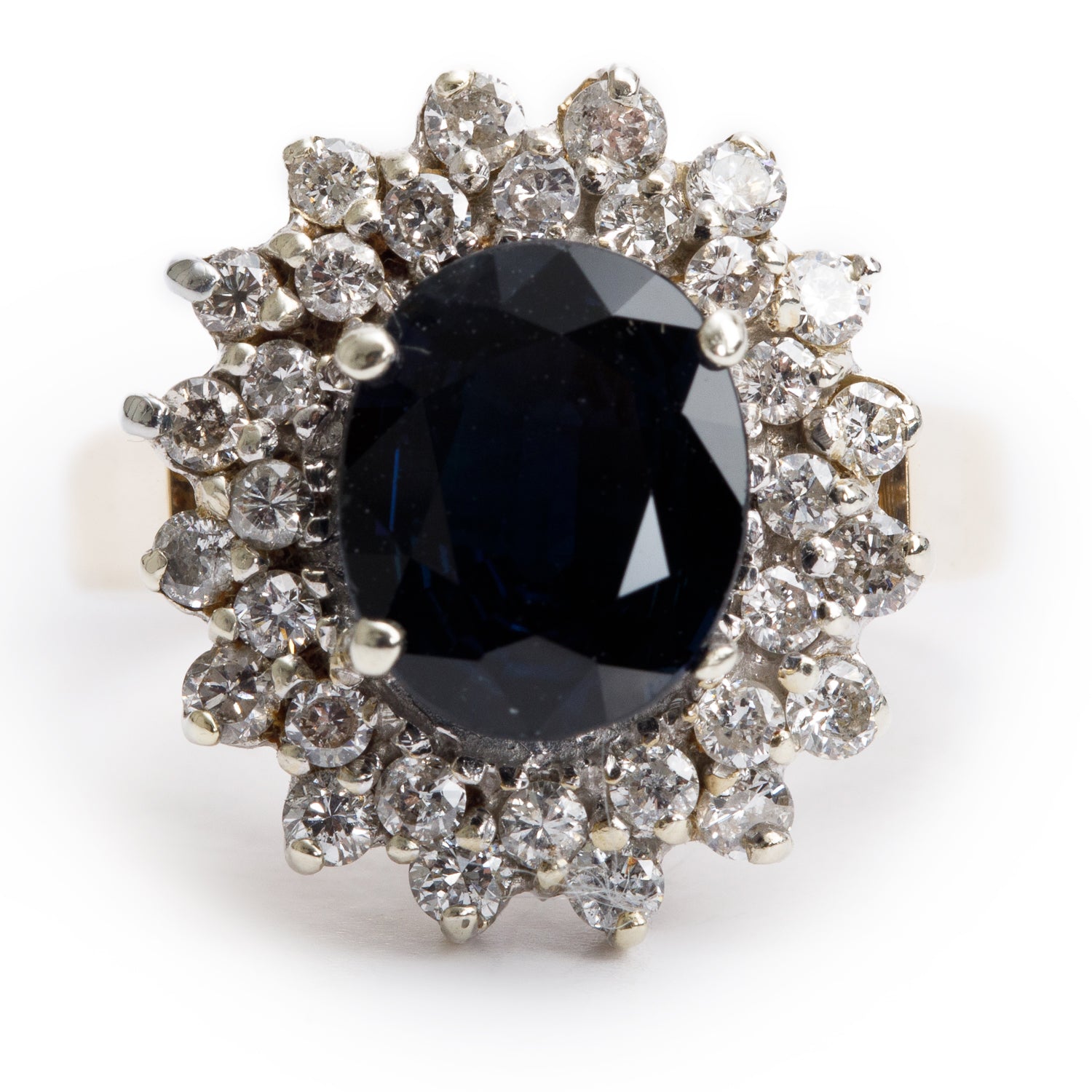 18k Yellow and White Gold Sapphire and Diamond Ring, Size 8
