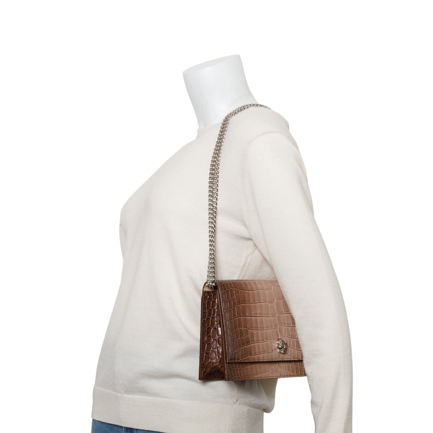 Brown Ombre Crocodile Embossed Skull Small Crossbody Bag