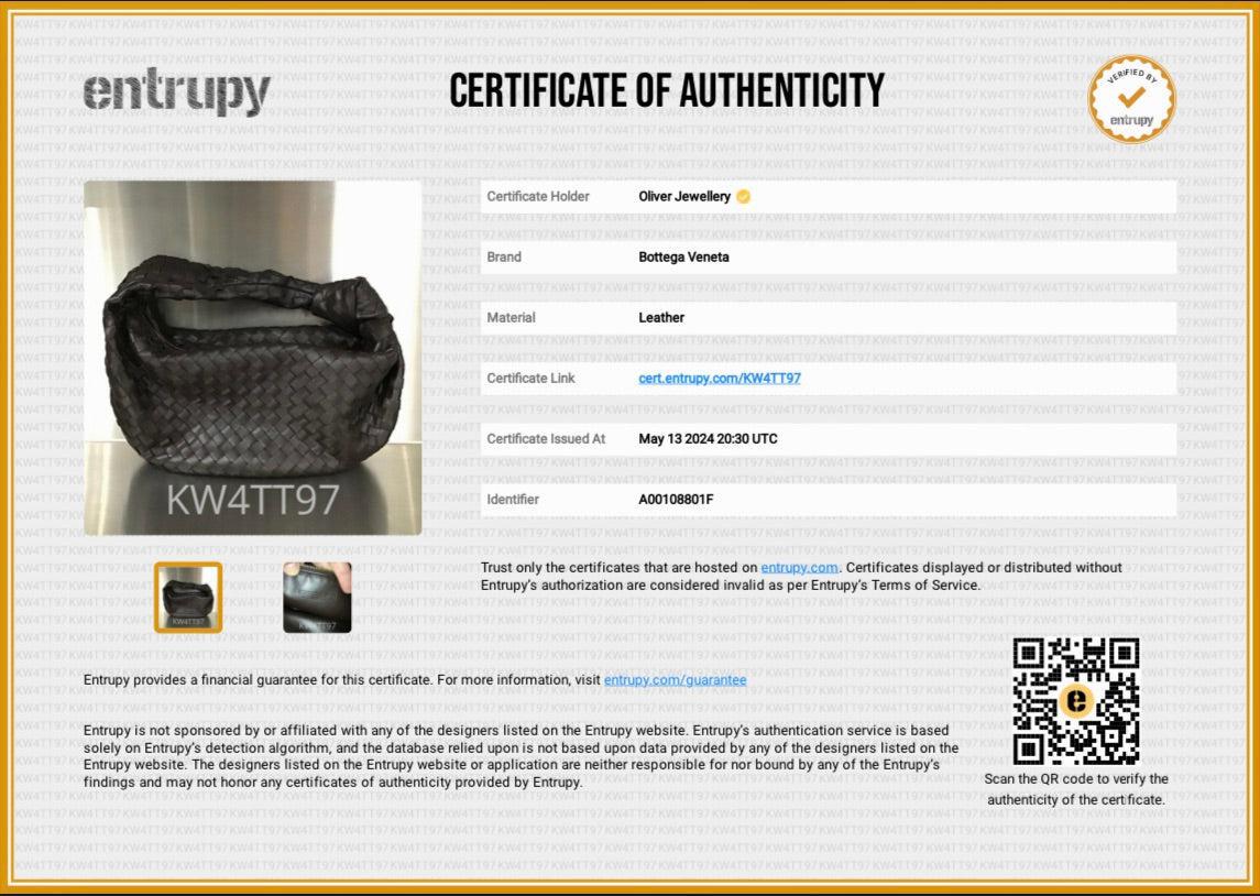 Dust Bag, Tag, Booklet, Reciept, Entrupy Certificate of Authenticity