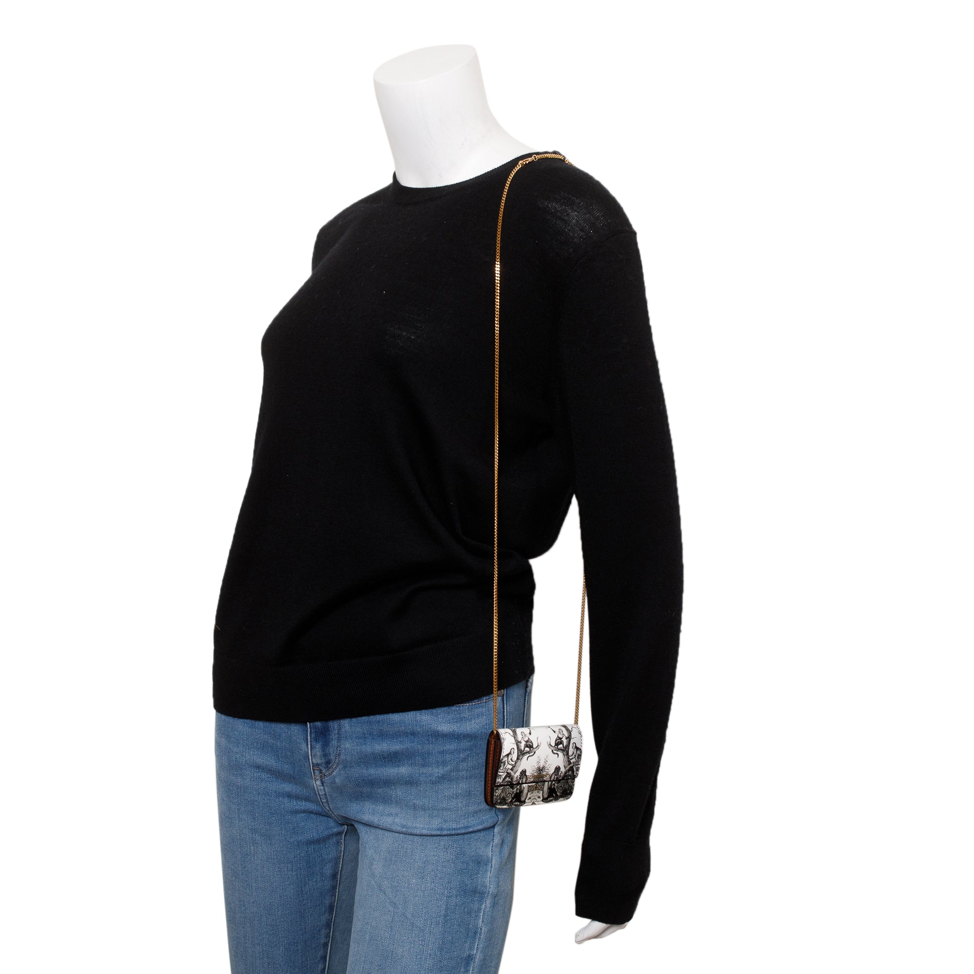 Black/White Monkey Print Leather Card Case On Chain w/ Box