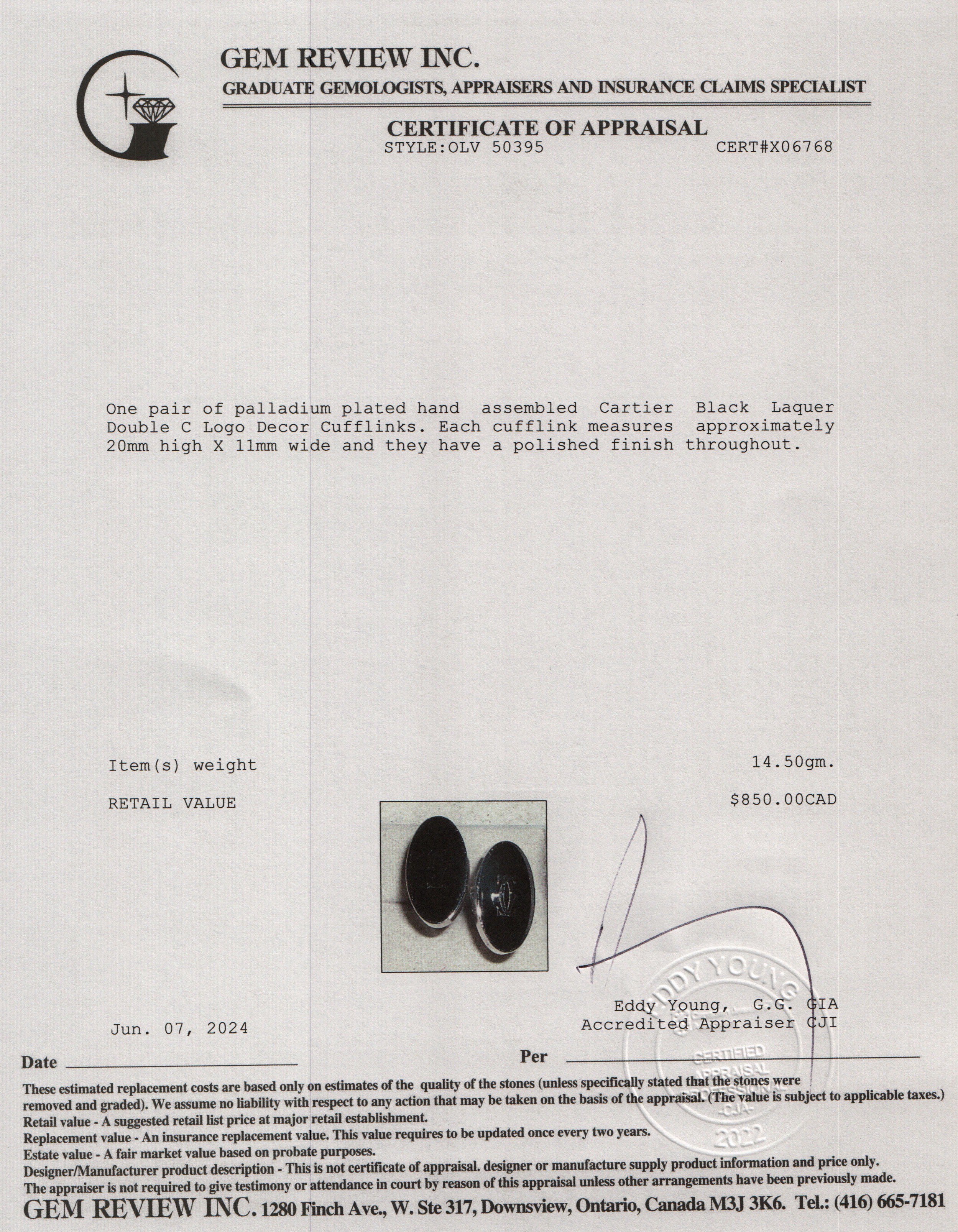 Palladium-Plated Black Laquer Double C Logo Decor Cufflinks