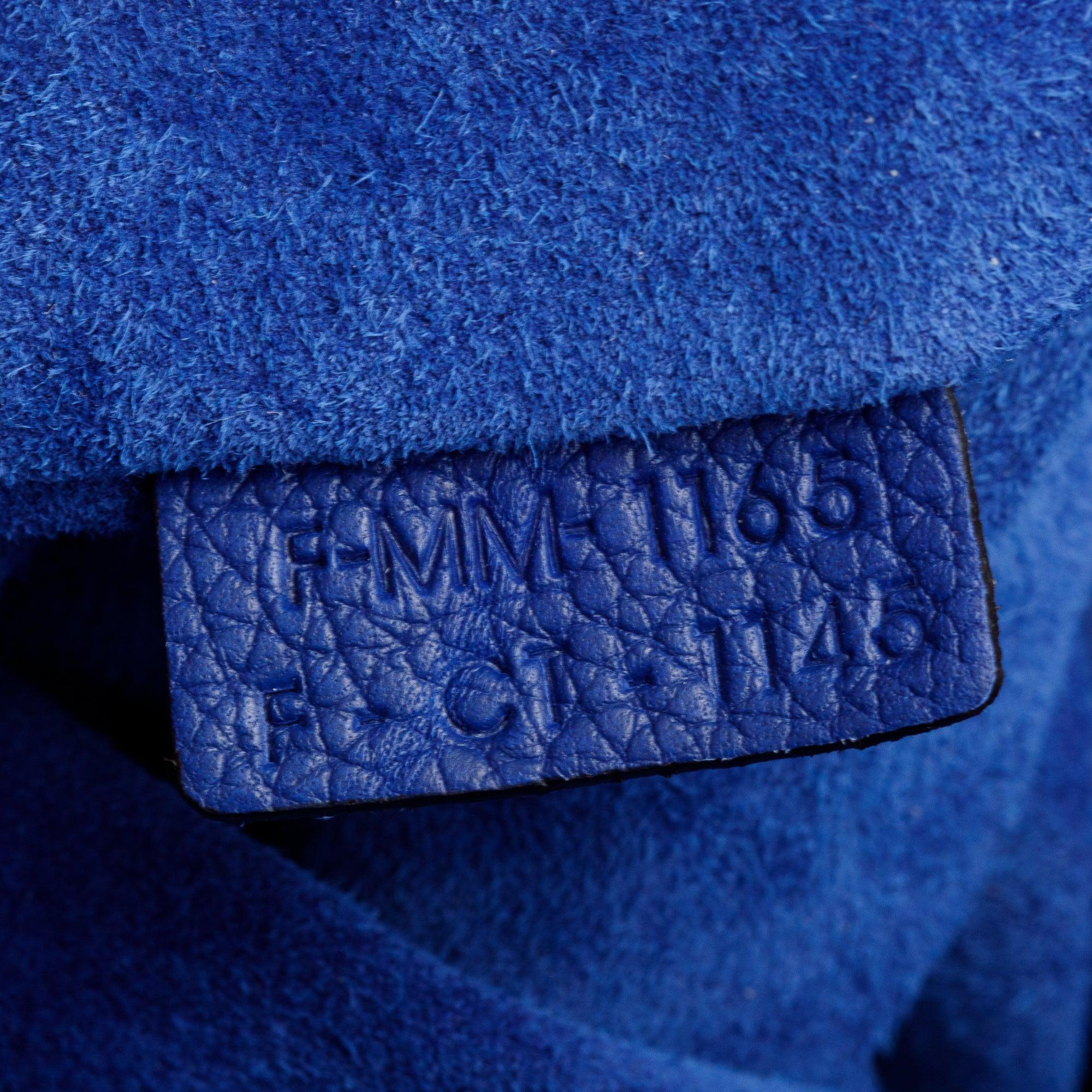 Blue Drummed Calfskin Leather Mini Luggage Tote
