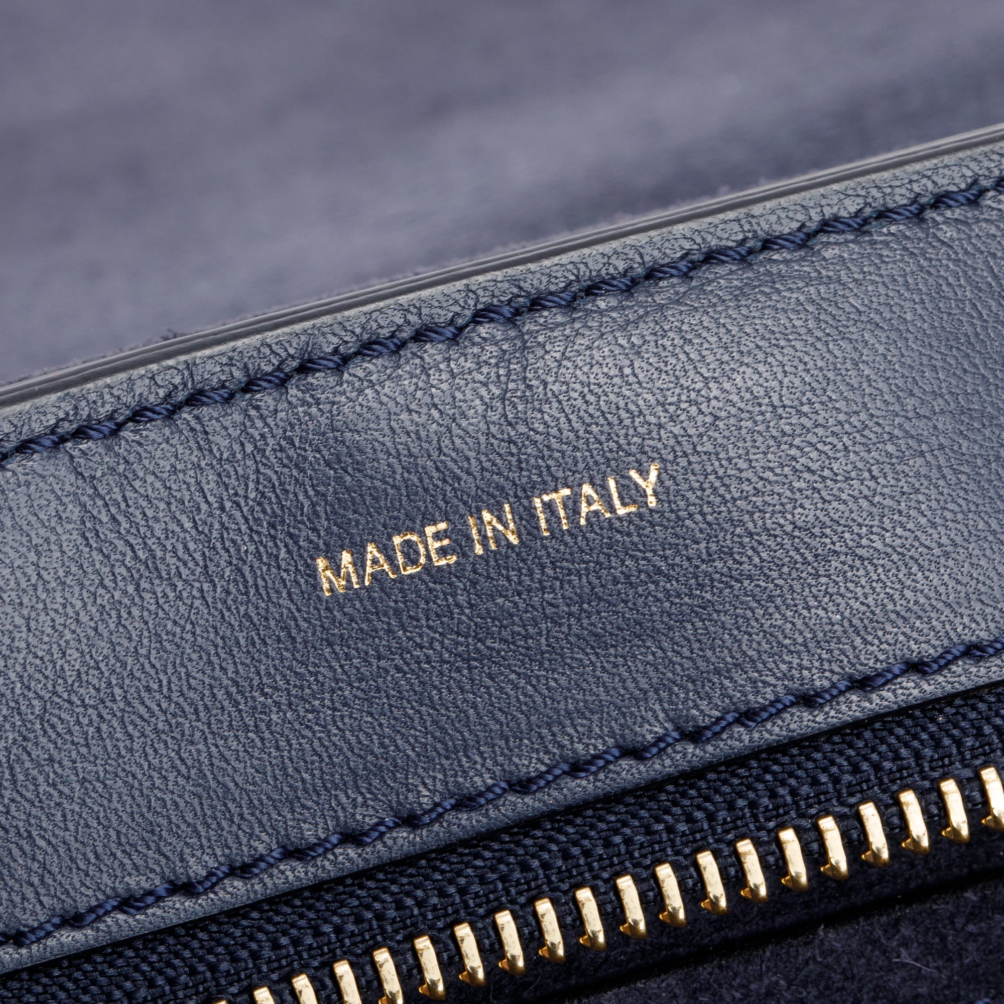 Condition: Good; slight surface scratches at hardware; slight scratches throughout exterior leather and suede; lost of shape due to wear; slight scratches at interior