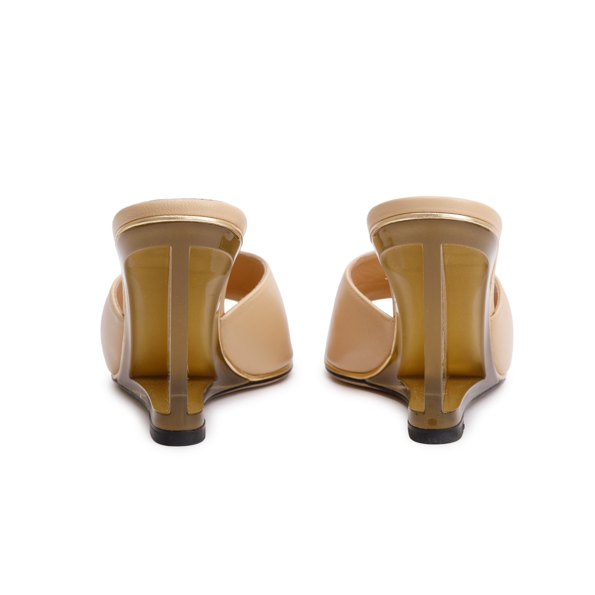 Beige Lambskin Leather Lucite CC Wedge Mules, Size 39.5 w/ Box