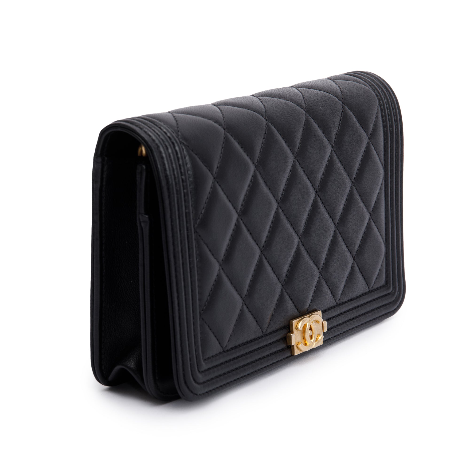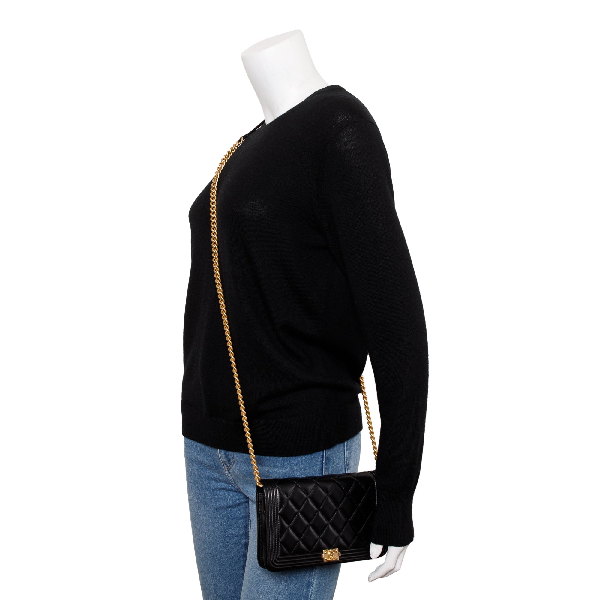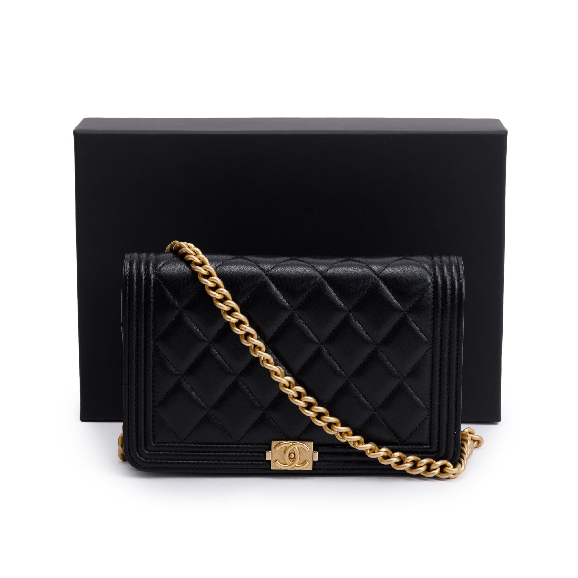 Black Lambskin Leather Boy Wallet on Chain w/ Box & Authenticity Card