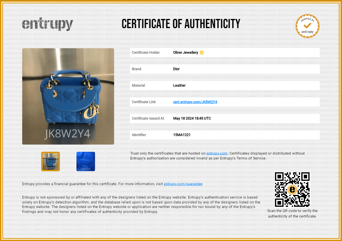 Box, Dust Bag, Strap, Entrupy Certificate of Authenticity