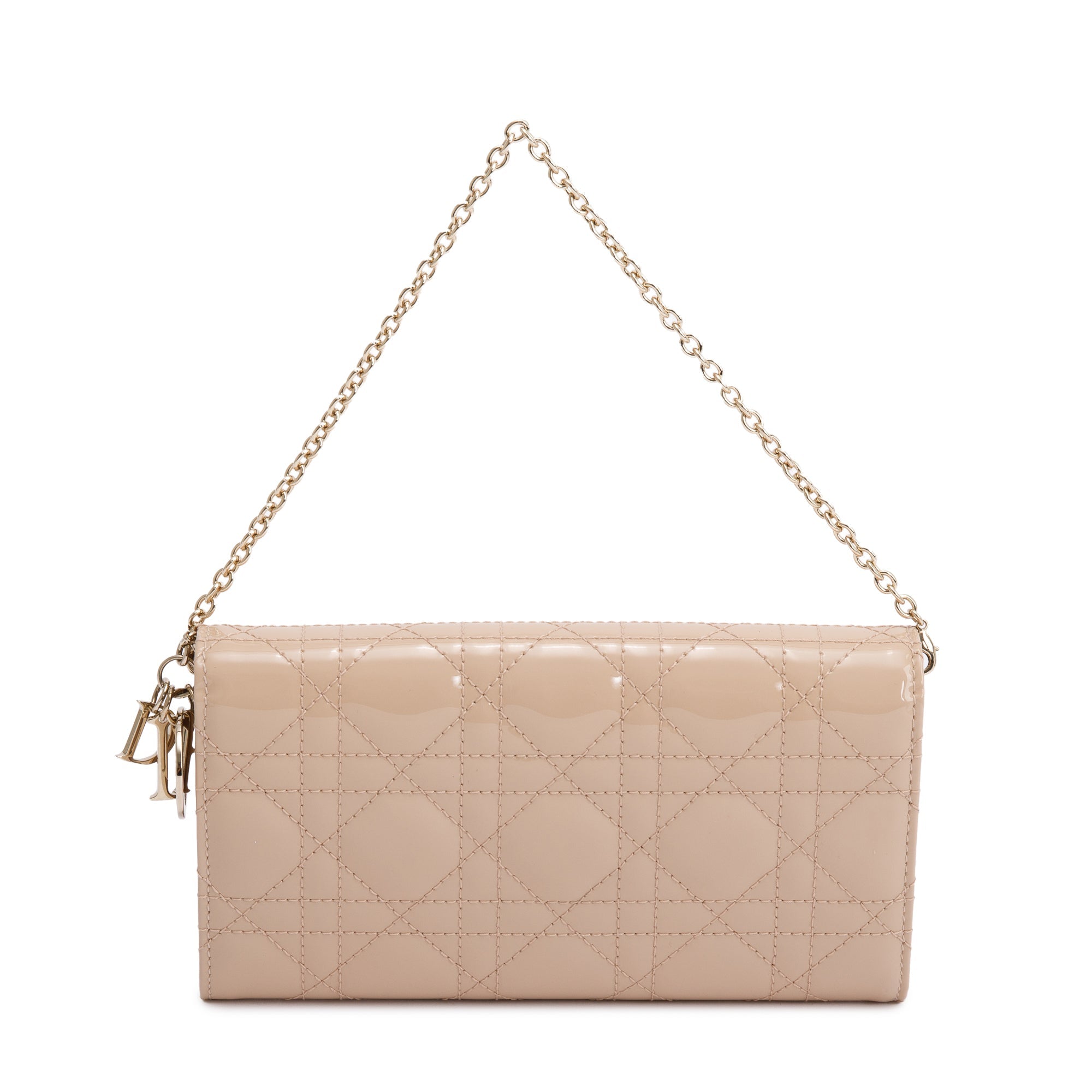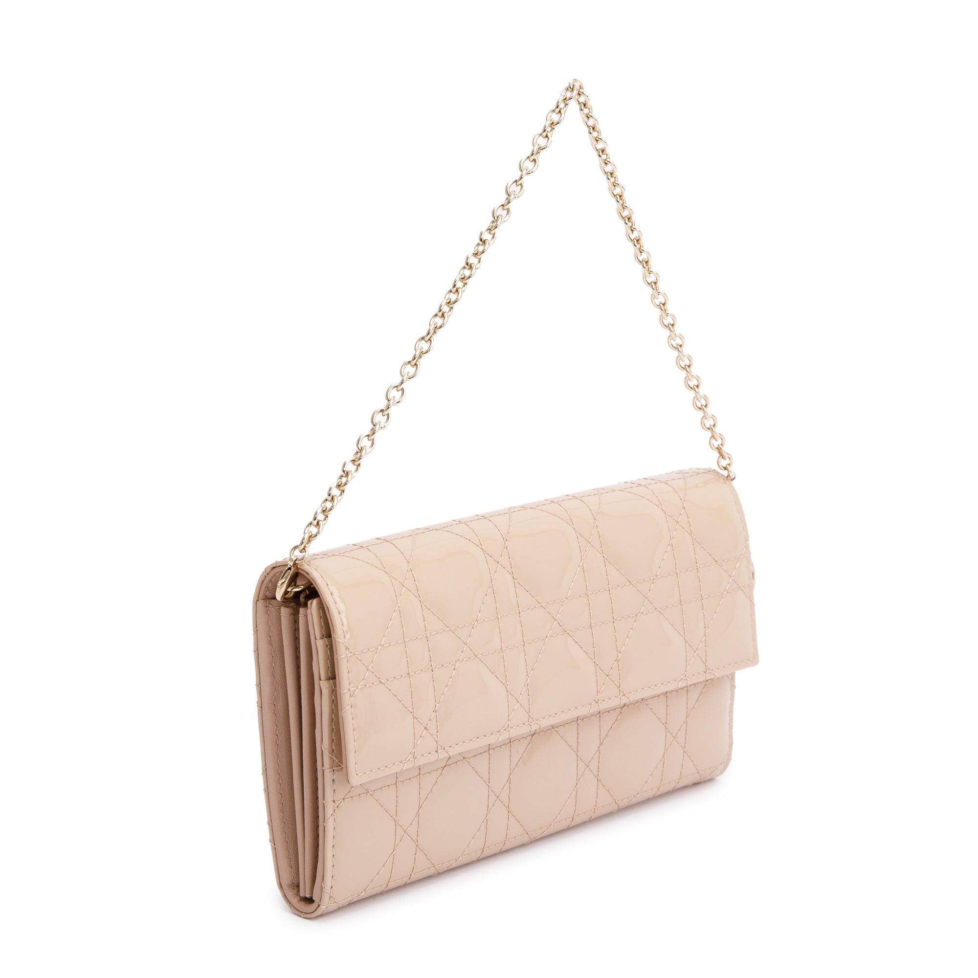 Beige Cannage Patent Leather Rendezvous Wallet on Chain w/ Box