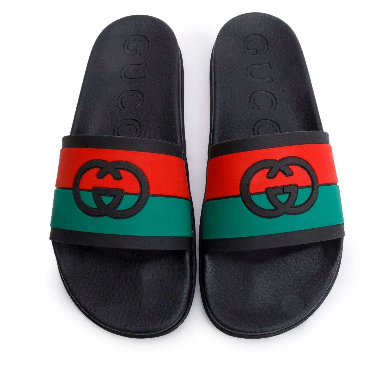 Black Green & Red Web Rubber Interlocking G Logo Slides, Men's Size 11 w/ Box