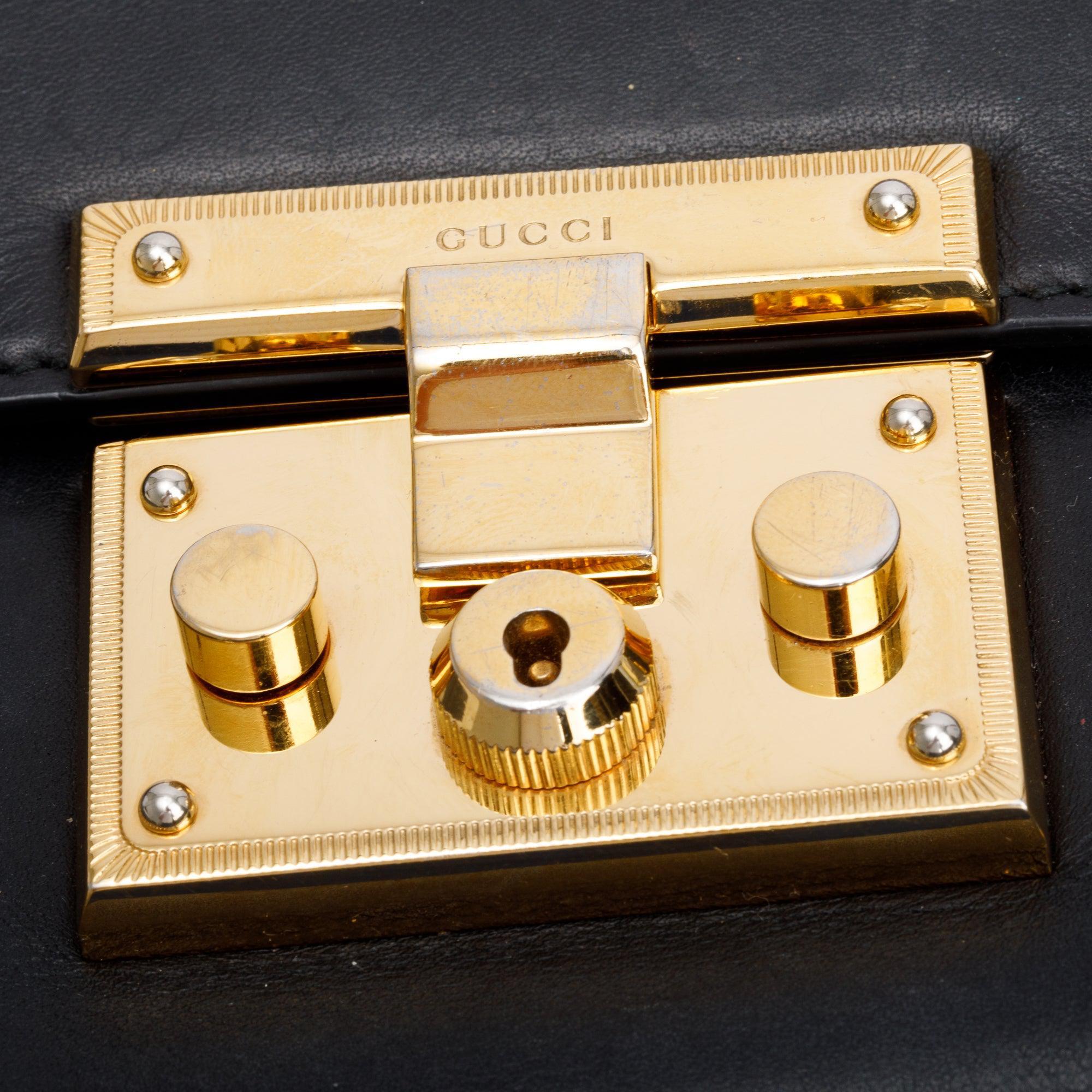 Condition: Good; slight scratches and tarnishing at hardware; slight scratches and scuffing at exterior leather; slight scratches at flap underside; clean interior