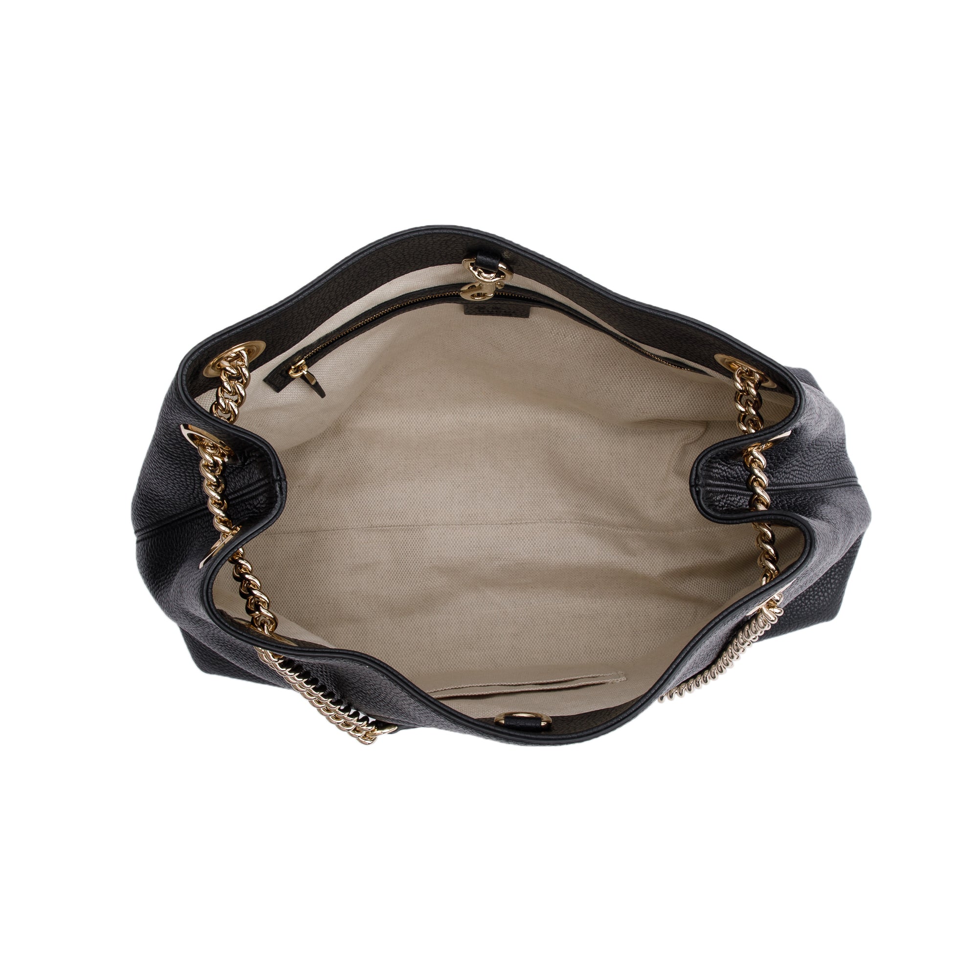 Black Pebbled Calfksin Leather Medium Soho Chain Tote