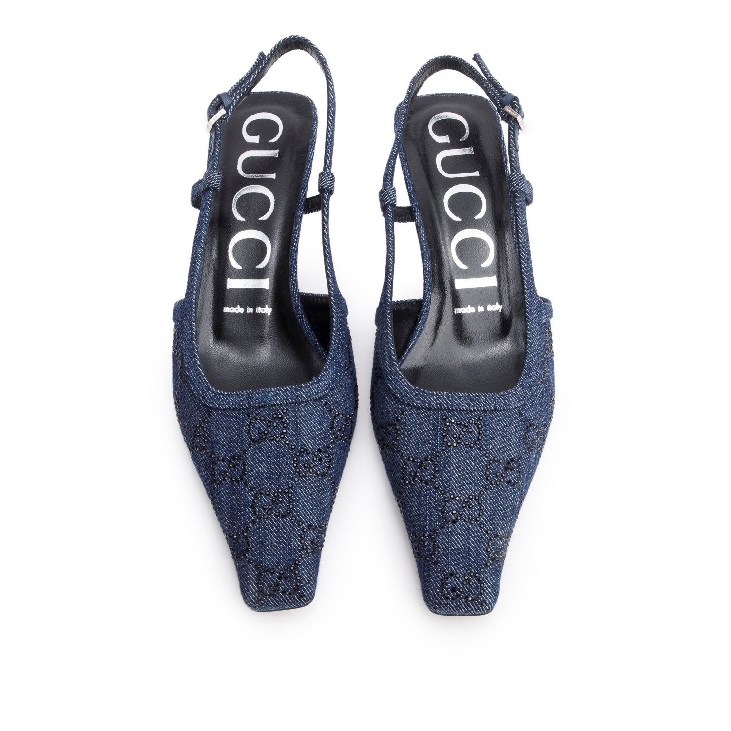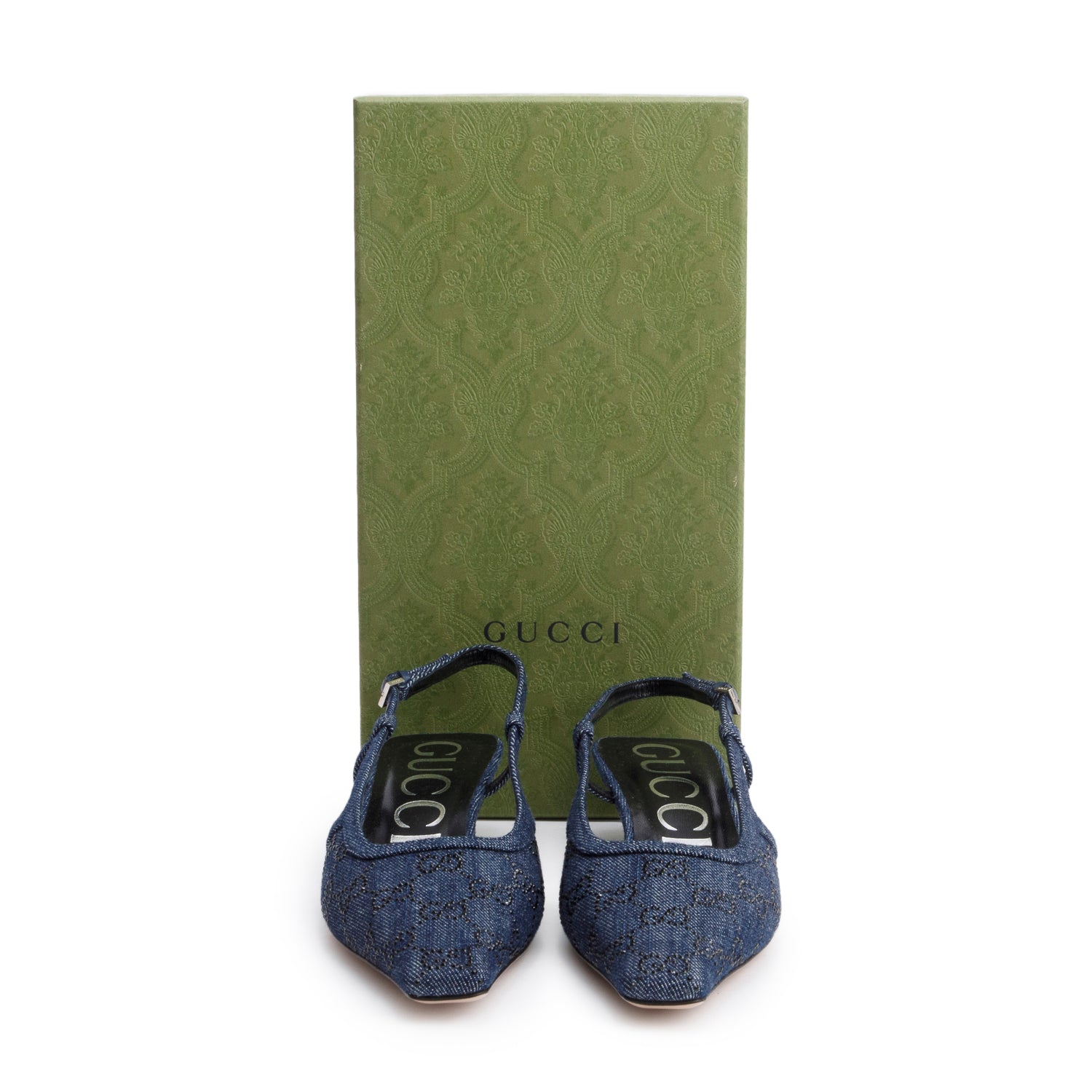 Blue Denim GG Crystal Slingback Pump, Size 38 w/ Box