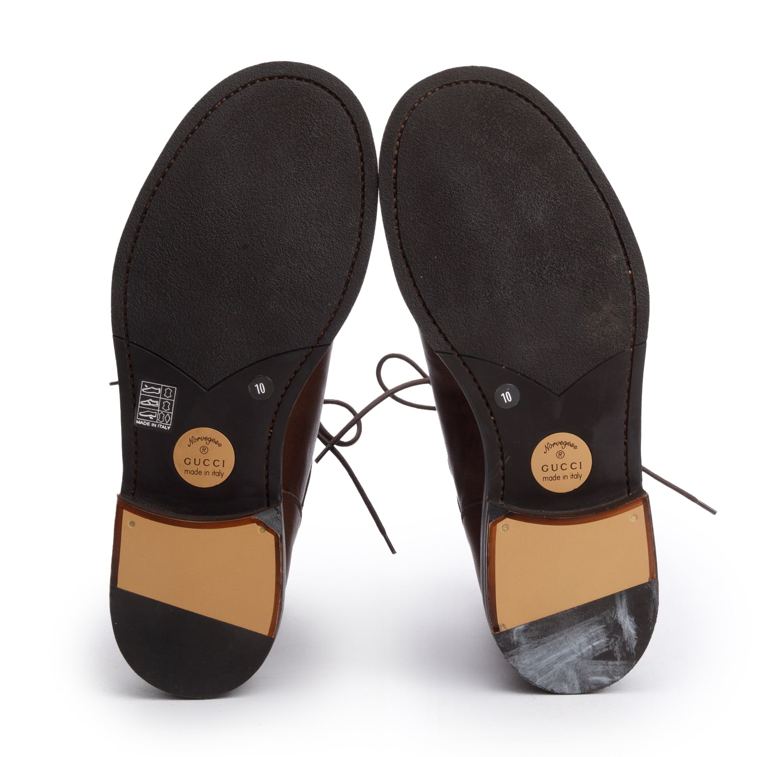 Brown Calfskin Leather Hiking Ankle Boots, Men's Size 10 w/ Box