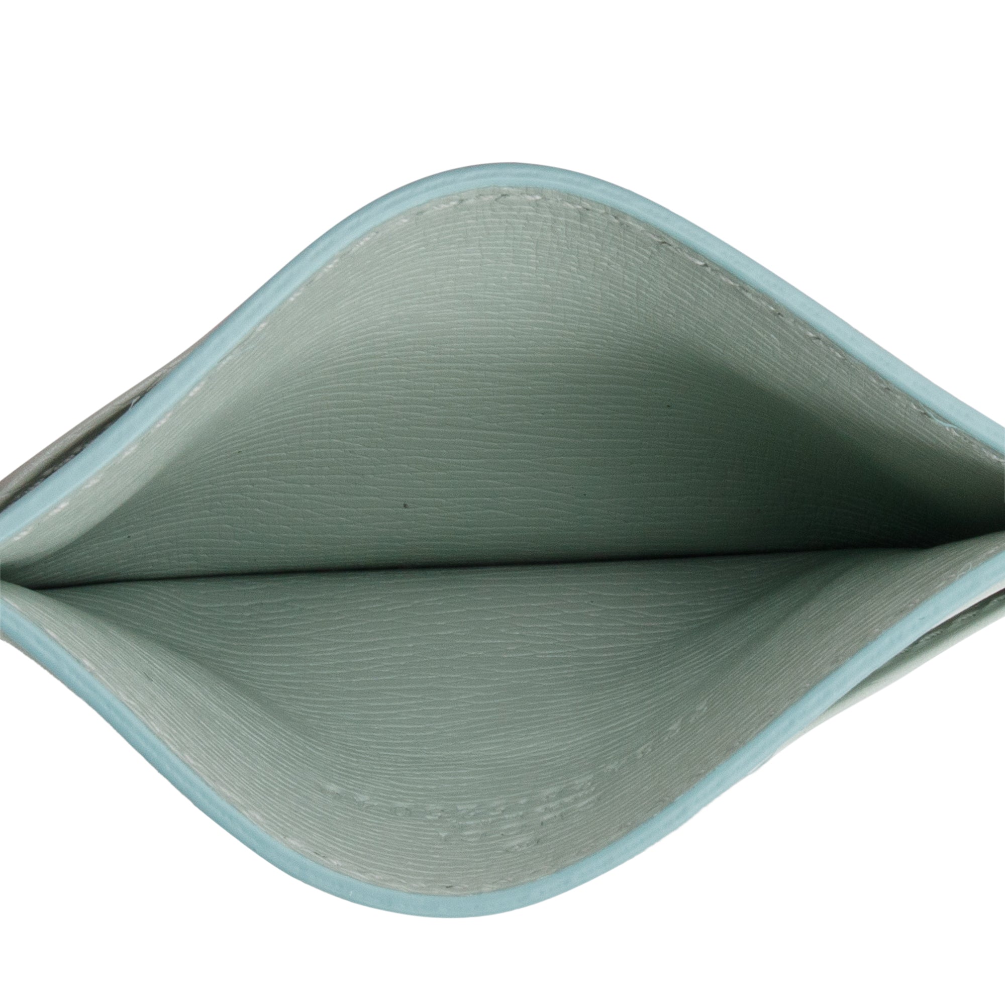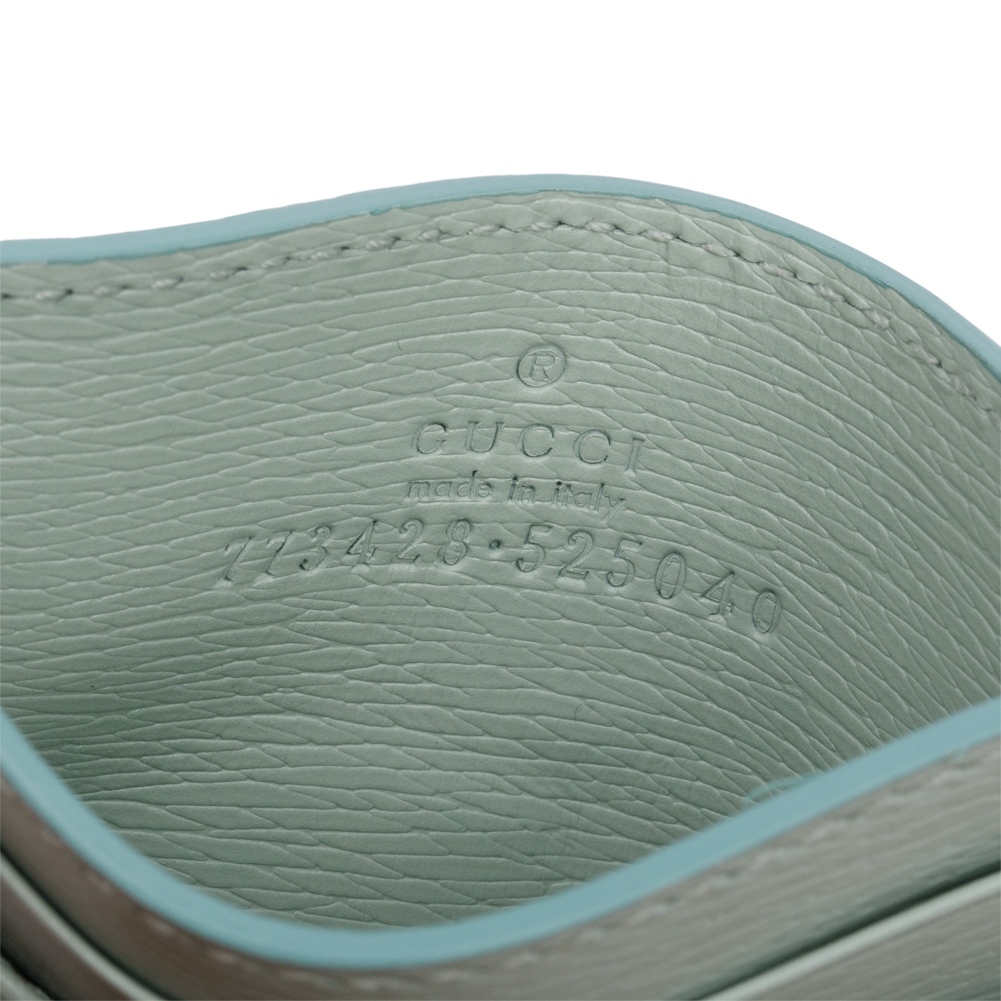 Green Calfskin Leather Card Case with Script w/ Box