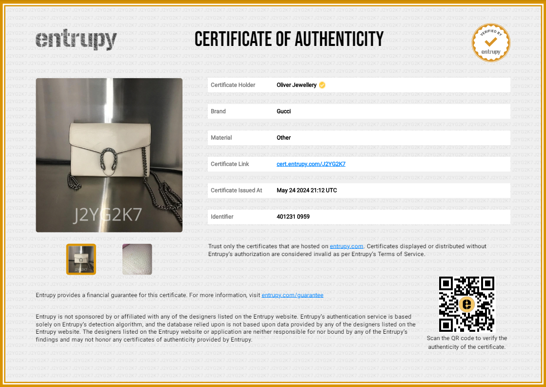 Dust Bag, Chain Link Strap, Entrupy Certificate of Authenticity