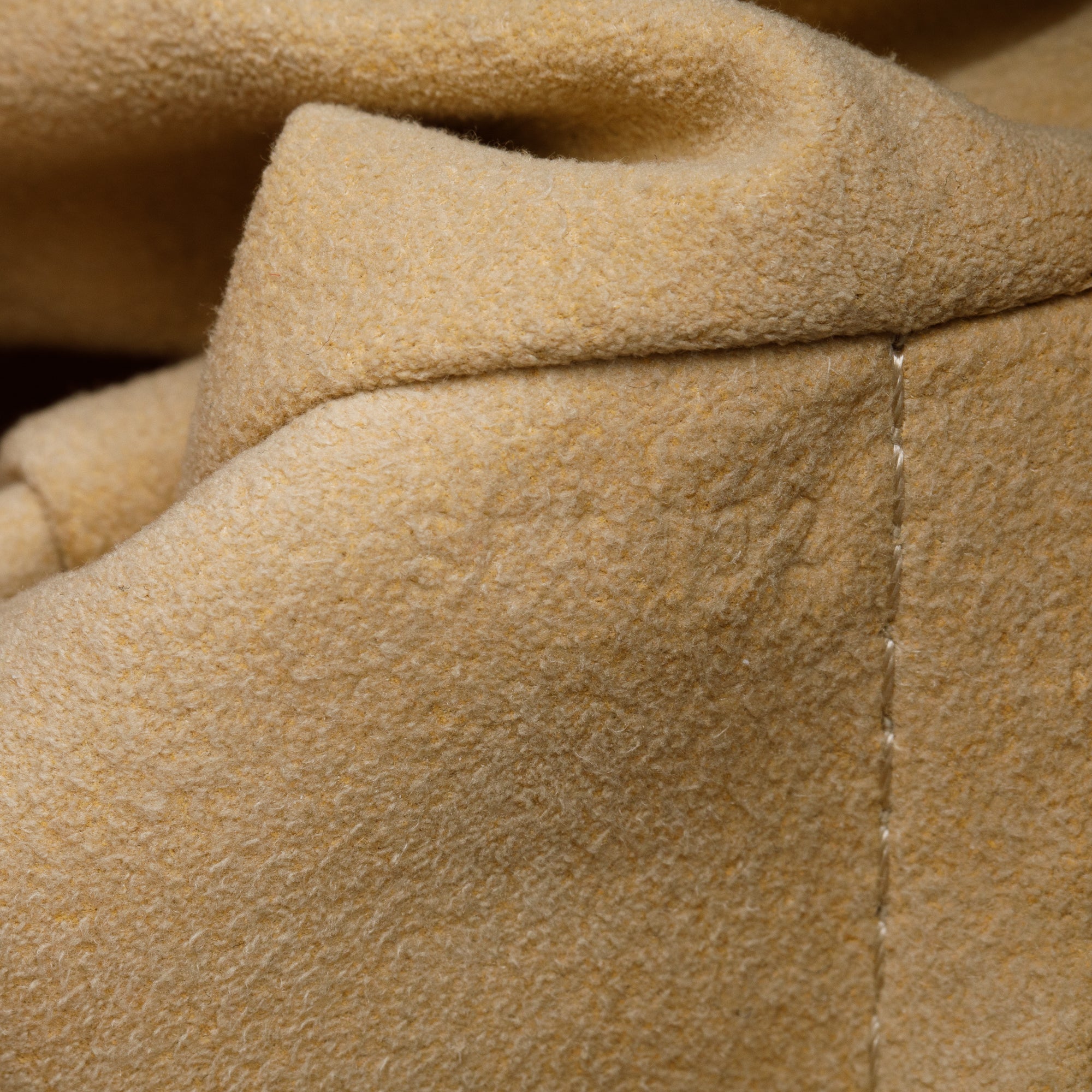 Condition: Good; light scratches and tarnishing at hardware; some scratches and wear at handle; slight wear at interior suede