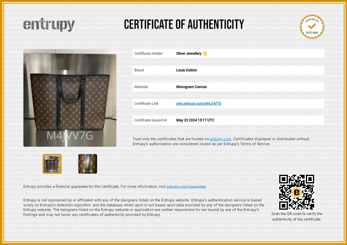 Strap, Dust Bag, Entrupy Certificate of Authenticity