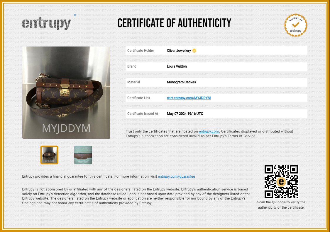 Box, Dust Bag, Straps, Entrupy Certificate of Authenticity