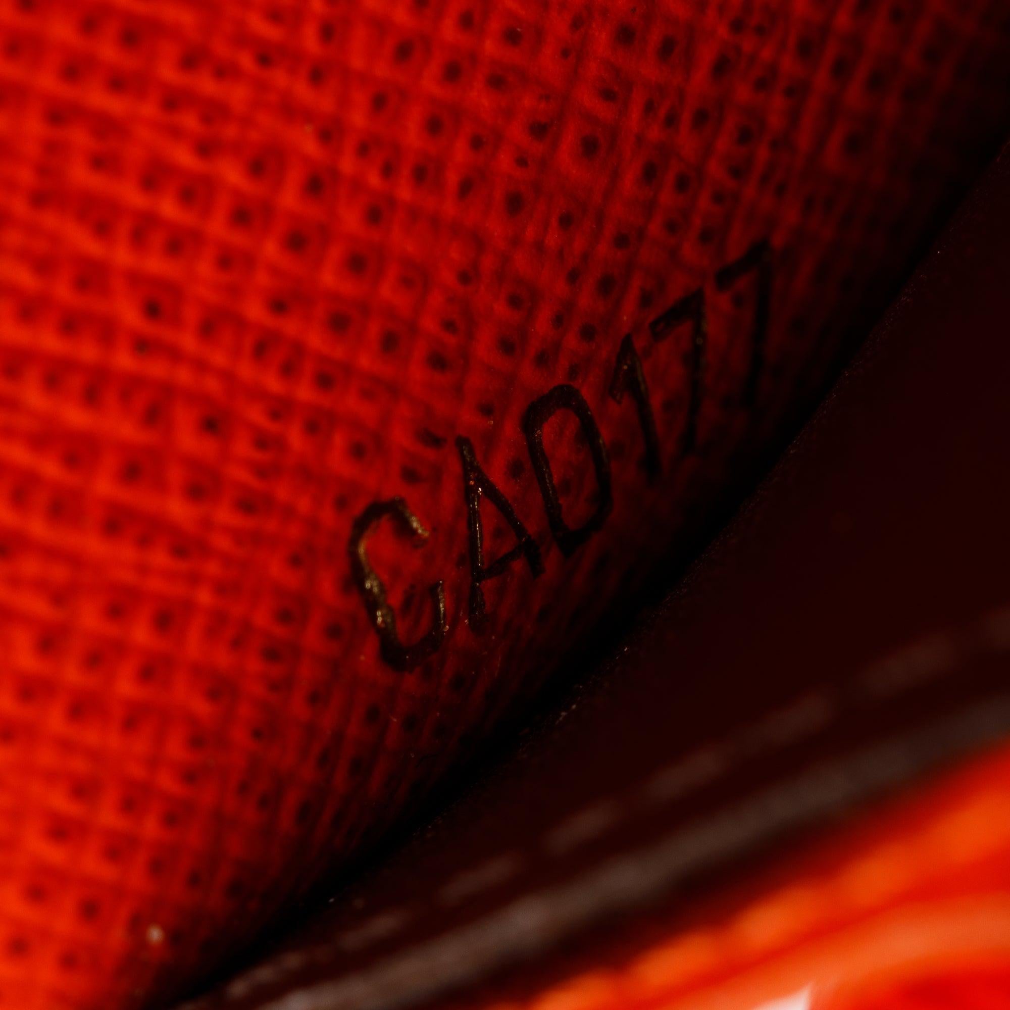 Condition: Good; slight tarnishing at hardware; slight scuffing at edges and corner; slight marks at flap underside and interior