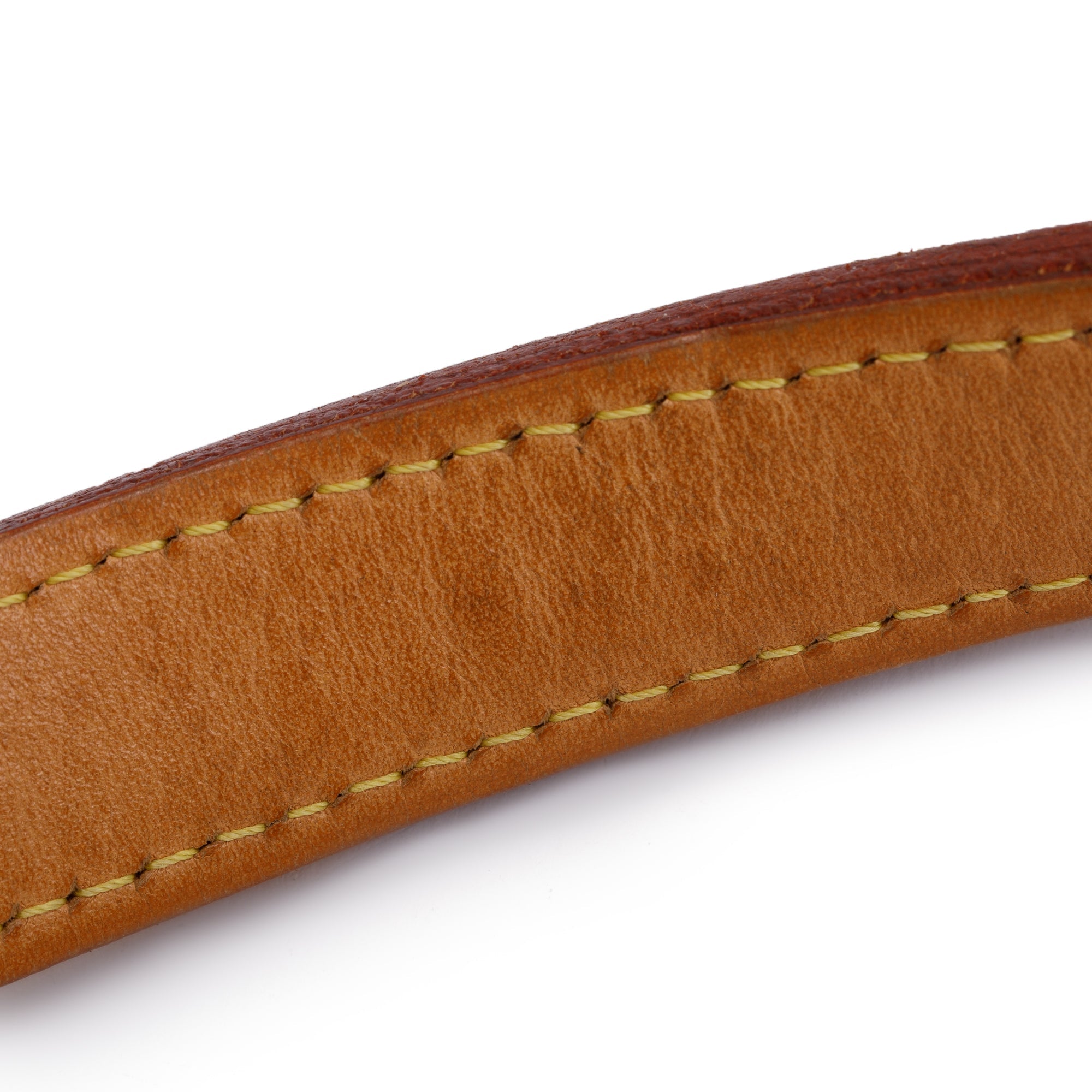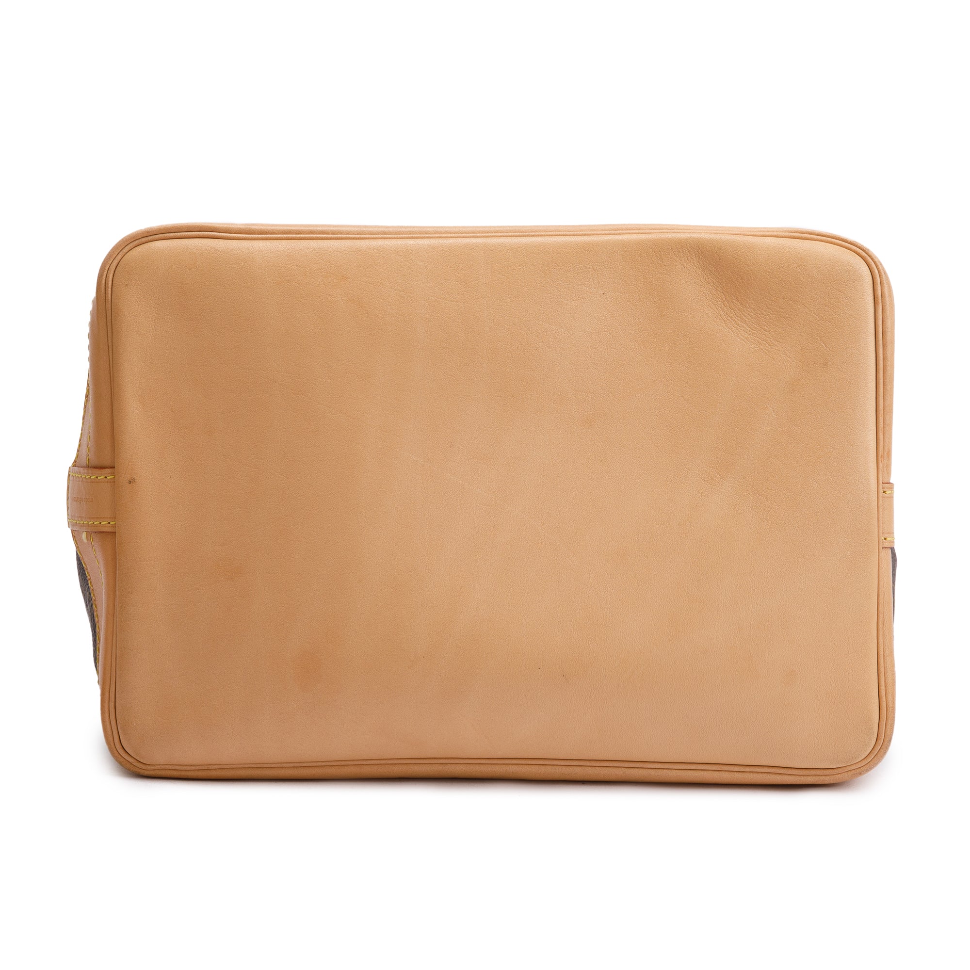 Condition: Good; light tarnishing at hardware; slight scuffing, marks and scratches at exterior canvas, vachetta leather trim and strap; light discolouration at interior
