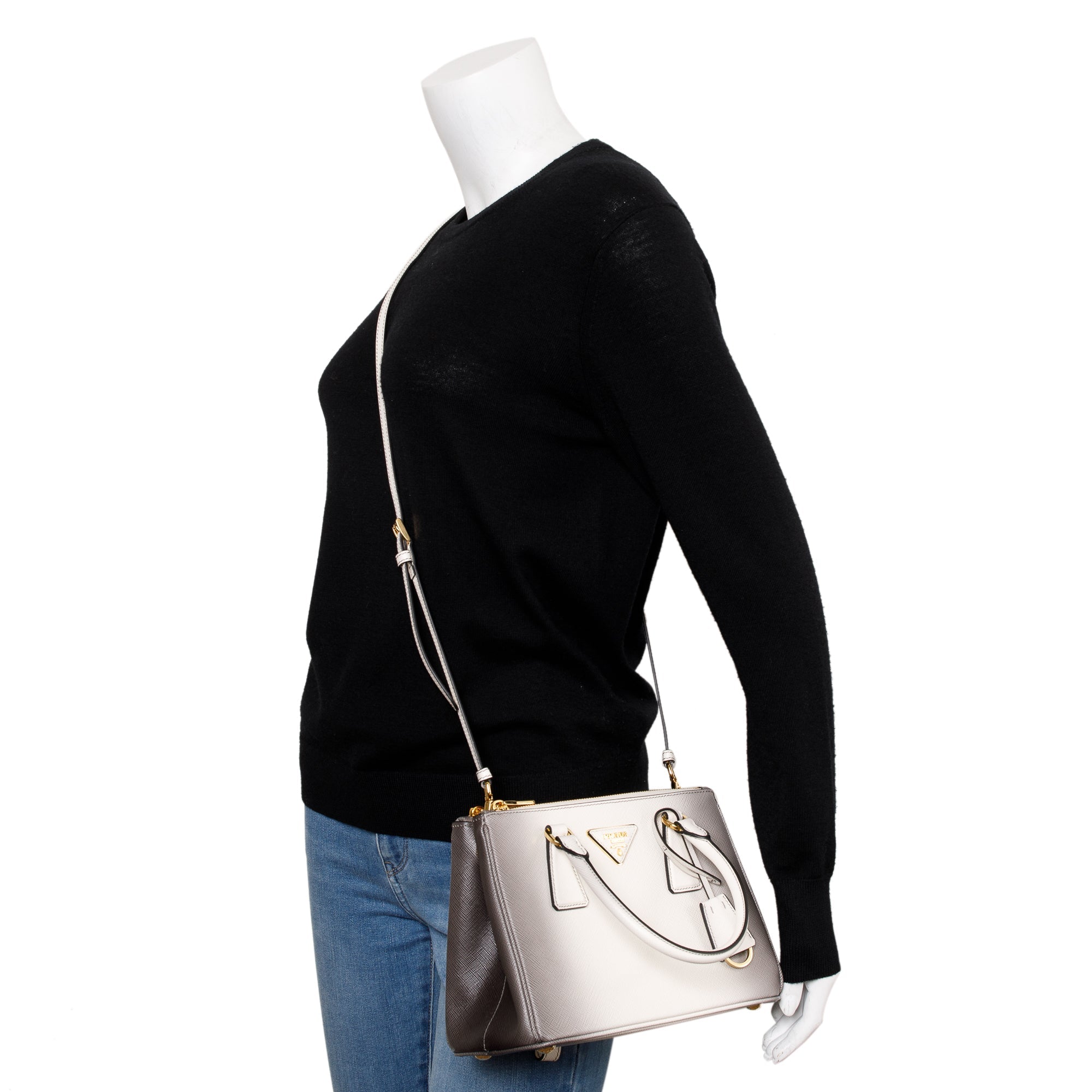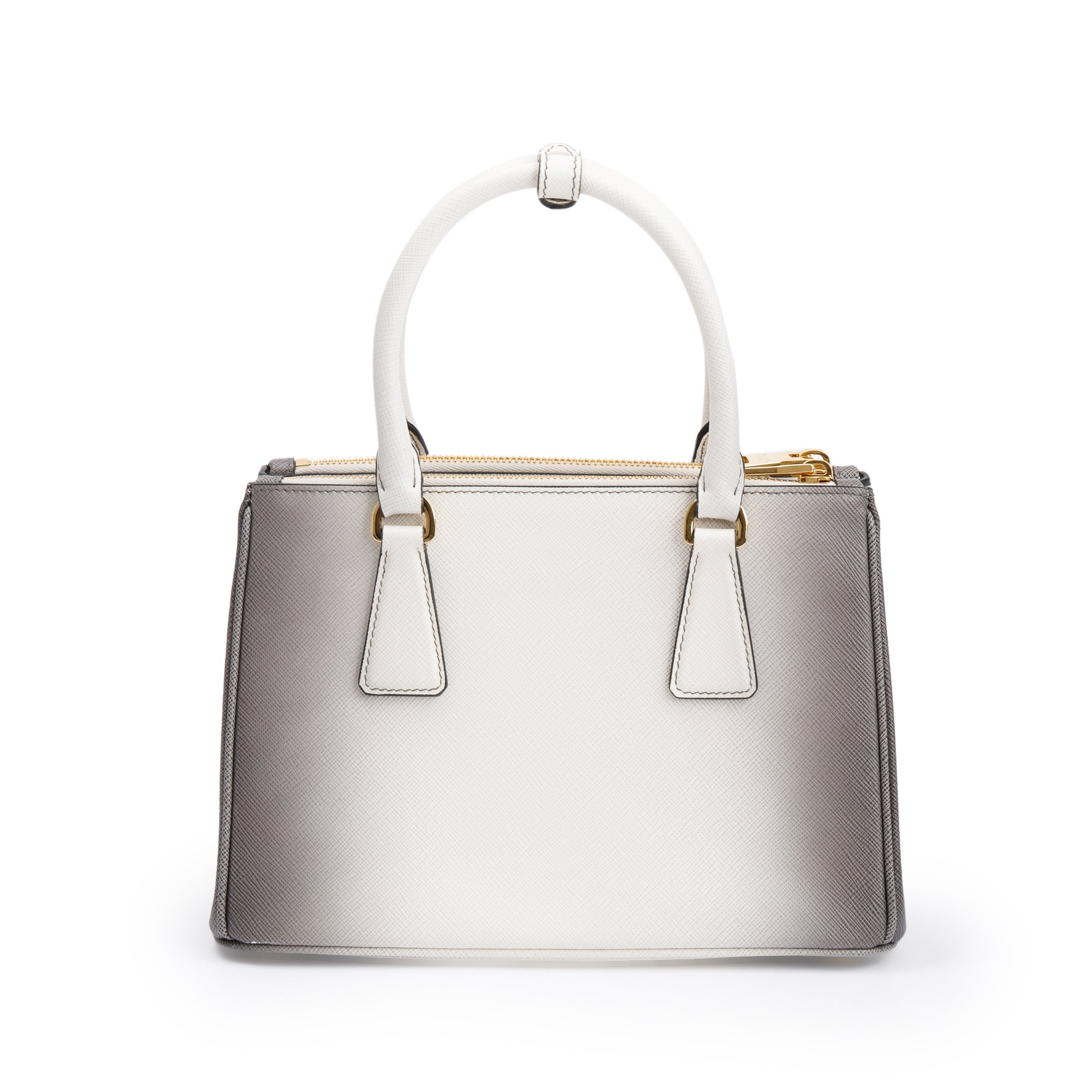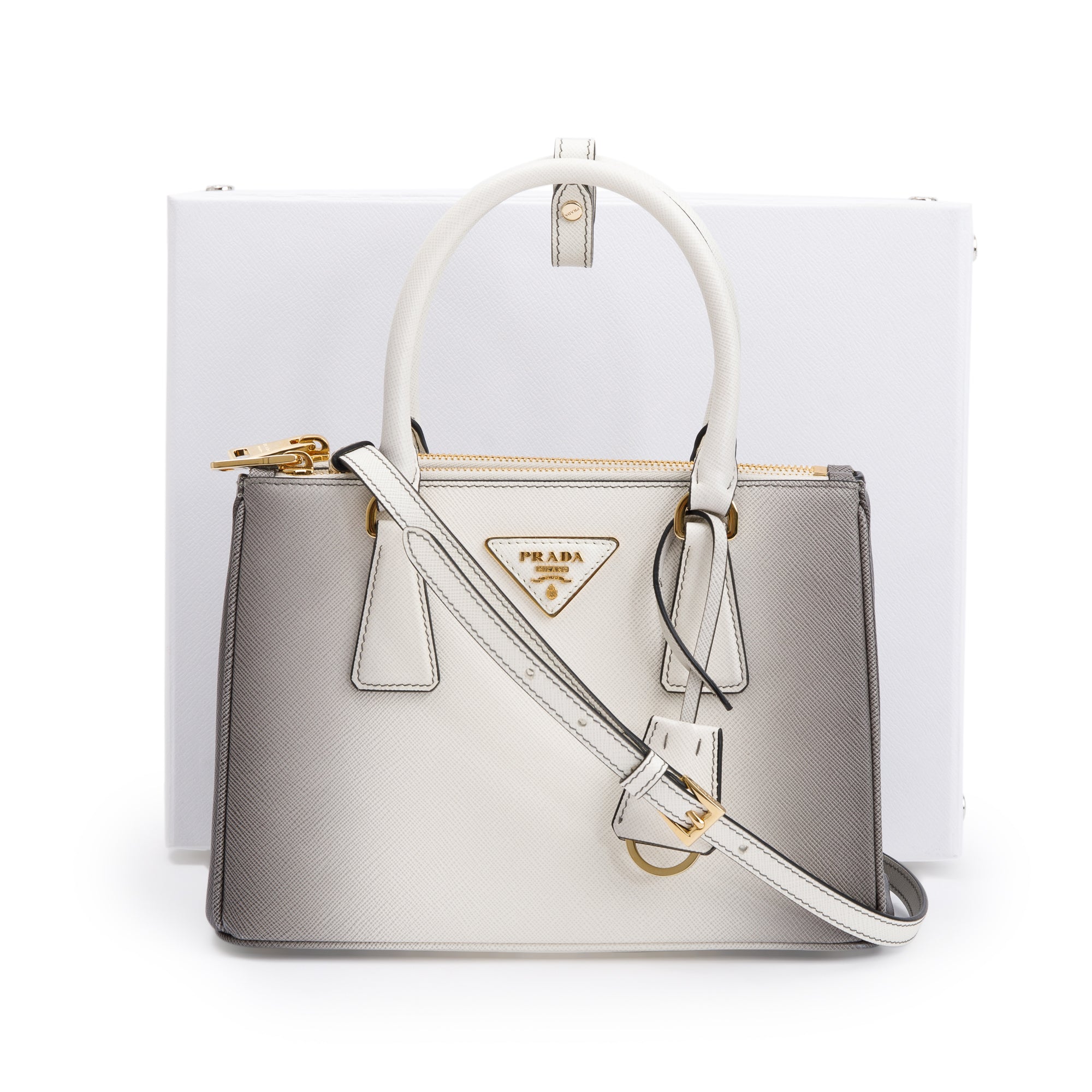 2023 White Ombre Saffiano Small Double Zip Galleria Tote w/ Strap, Receipt & Box