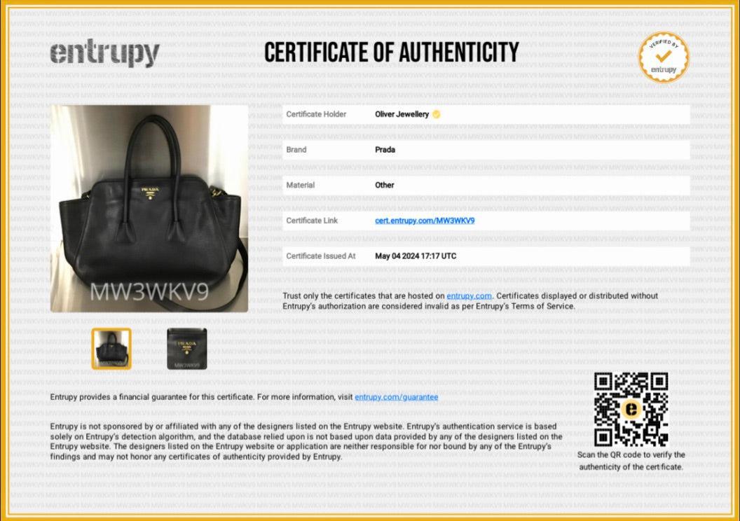 Autenticity Card, Booklet,, Strap, Luggage Loop, Entrupy Certificate of Authenticity