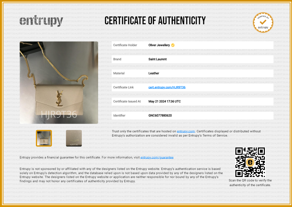 Box, Dust Bag, Chain Strap, Insert, Entrupy Certificate of Authenticity