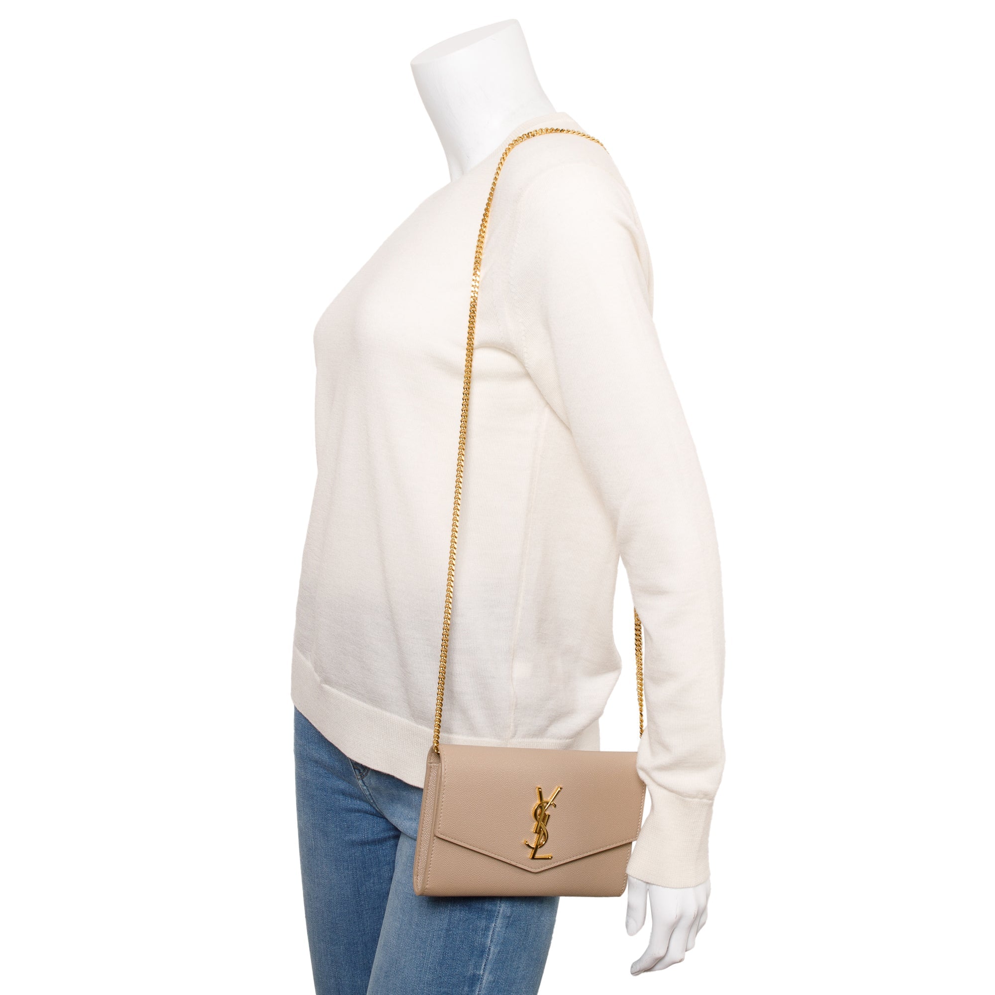 2020 Beige Grain De Poudre Leather Uptown Chain Wallet w/ Box & Insert