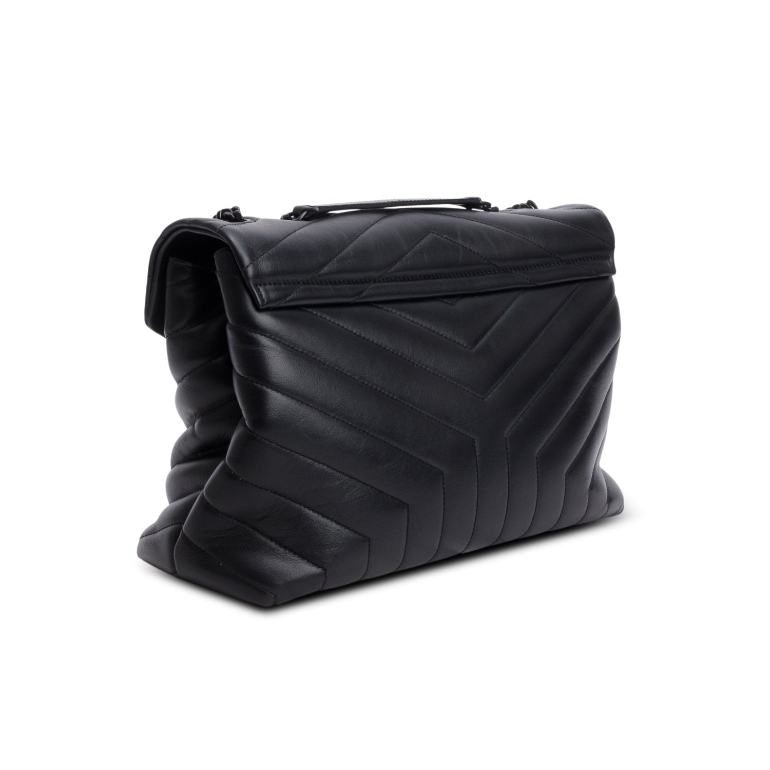2022 Black Calfskin Y Quilted Monogram Monochrome Medium Loulou Chain Satchel w/ Receipt