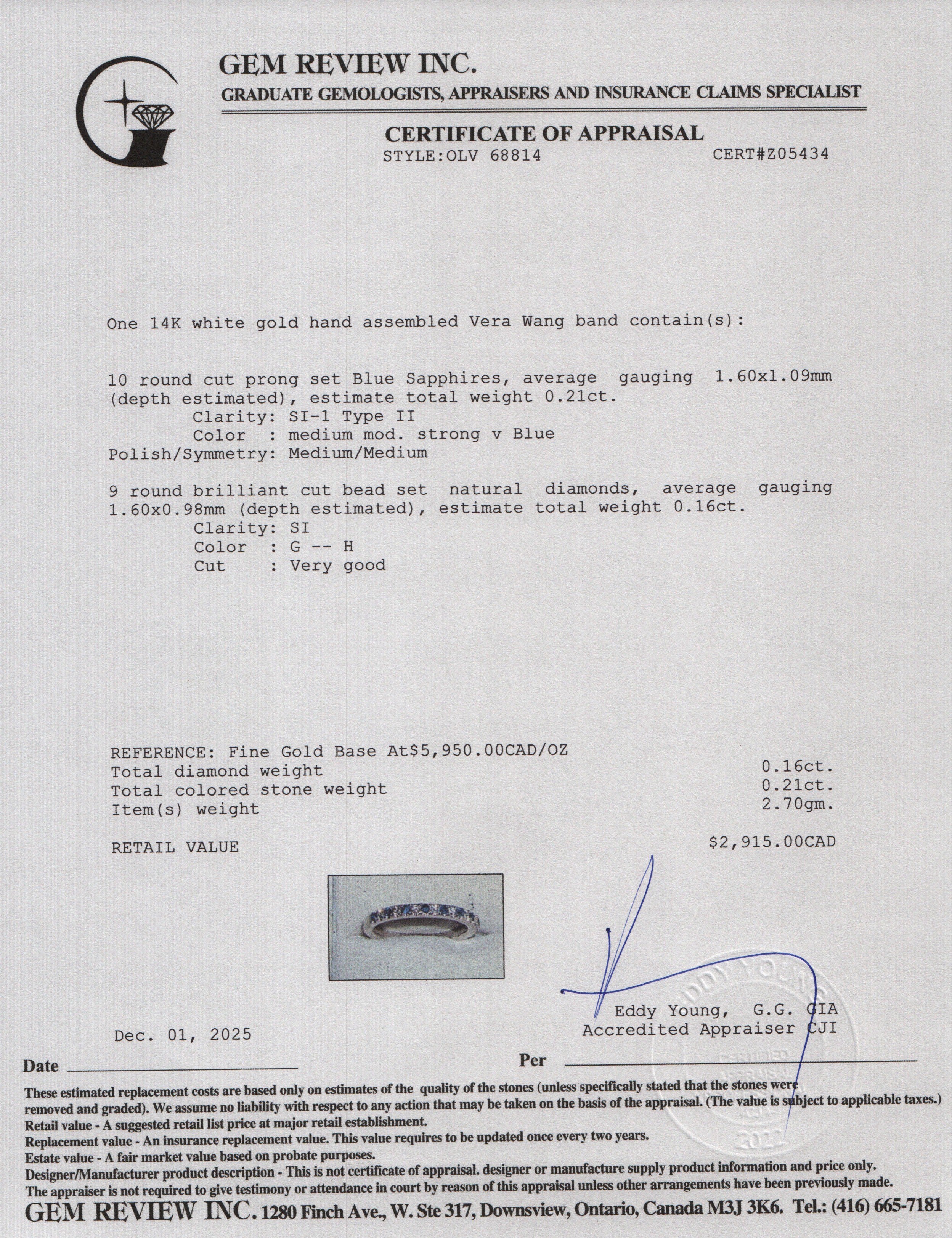 14k White Gold Sapphire & Diamond Band Ring, Size 6.5