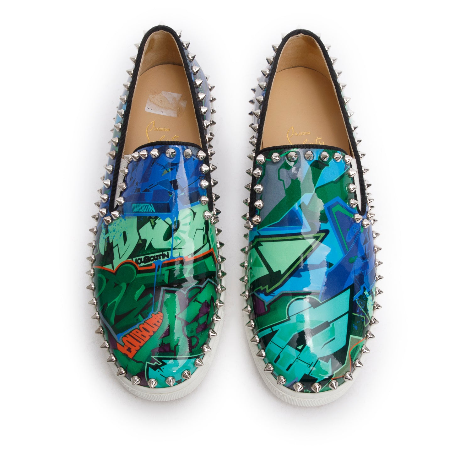 Blac/White Calfskin Leather Stars Urban Street Slip-On Sneakers, Size 39