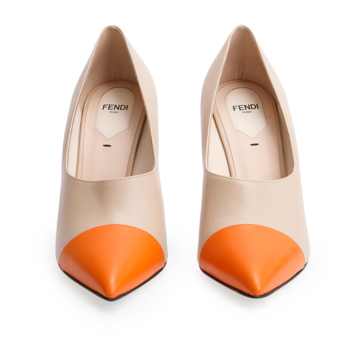 Beige/Orange Leather Roma Pointed-Toe Pumps, Size 40 w/ Box