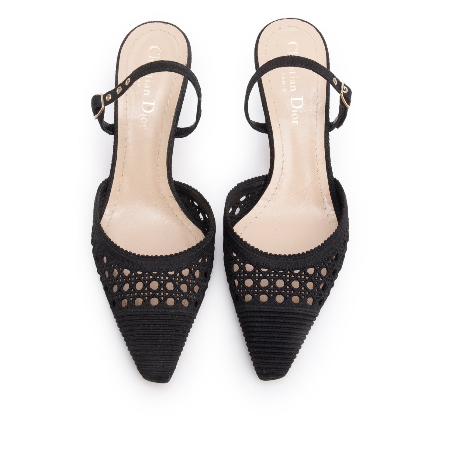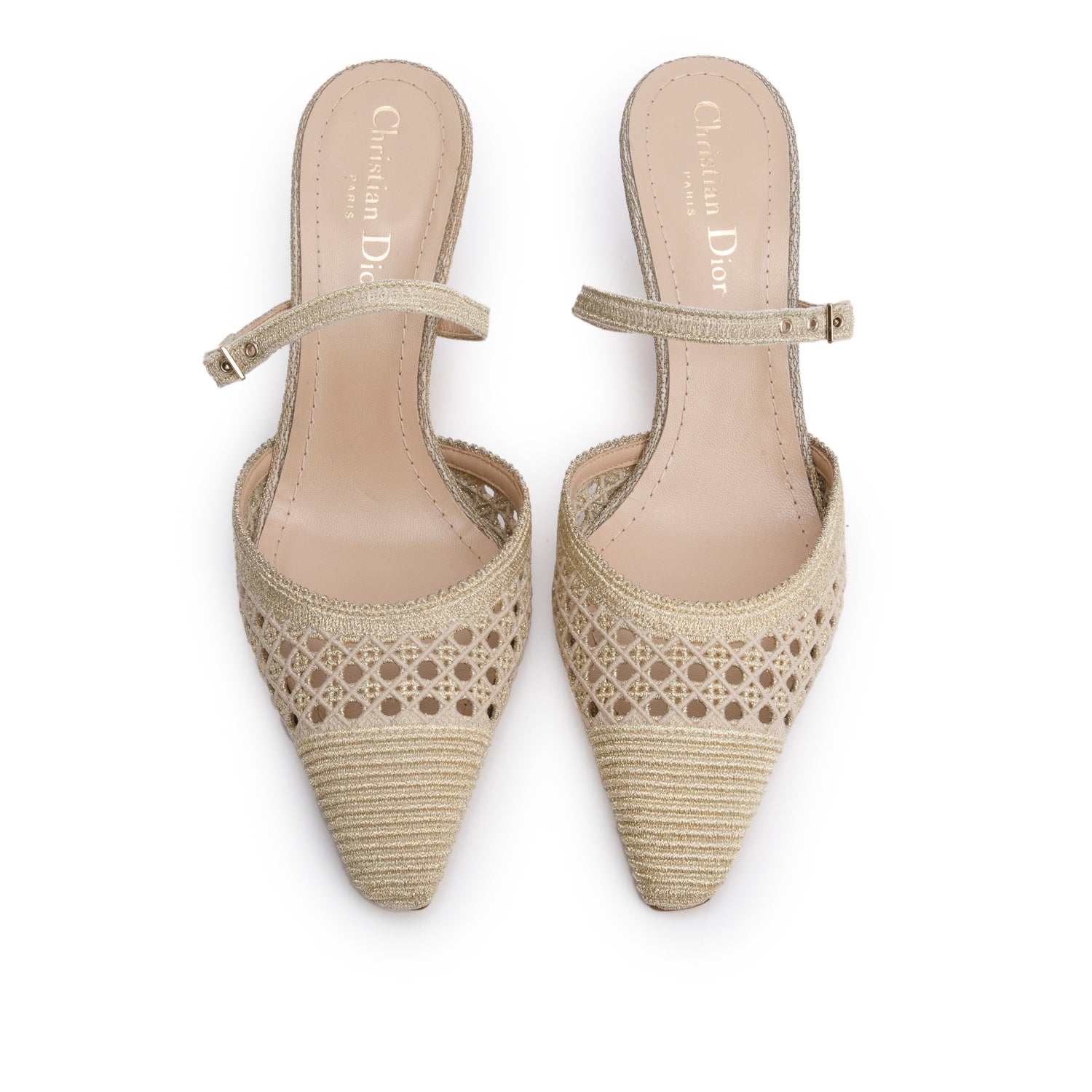 Beige/Gold Cannage Fabric Capture Slingback Pumps, Size 37 w/ Box