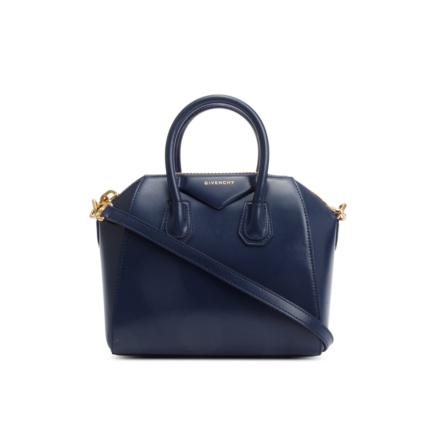 2022 Navy Box Leather Mini Antigona Bag w/ Strap