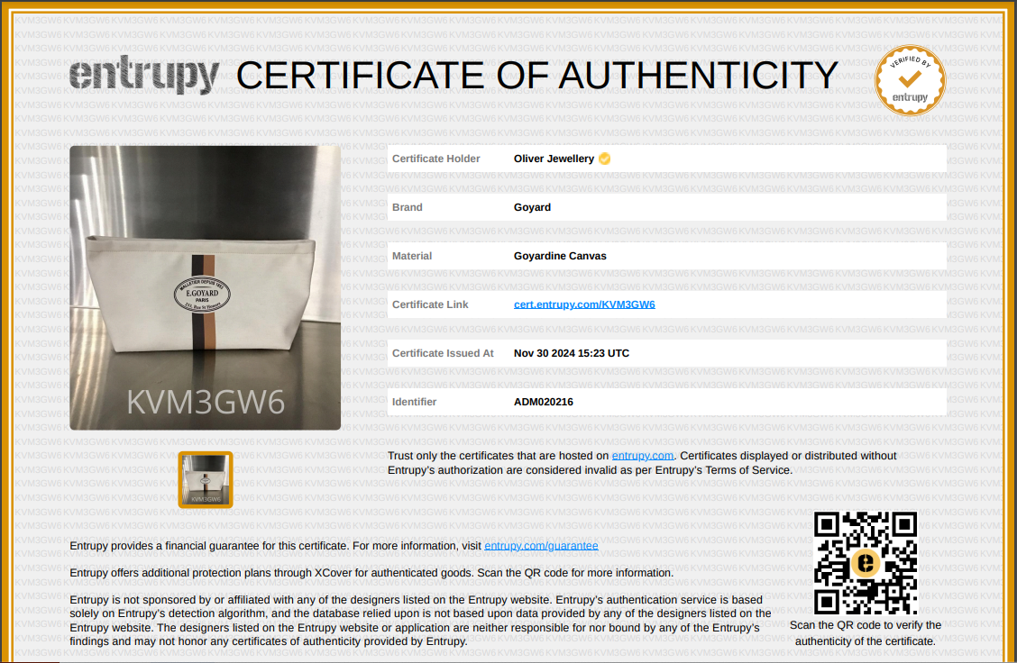 Dust Bag, Tags, Entrupy Certificate of Authenticity
