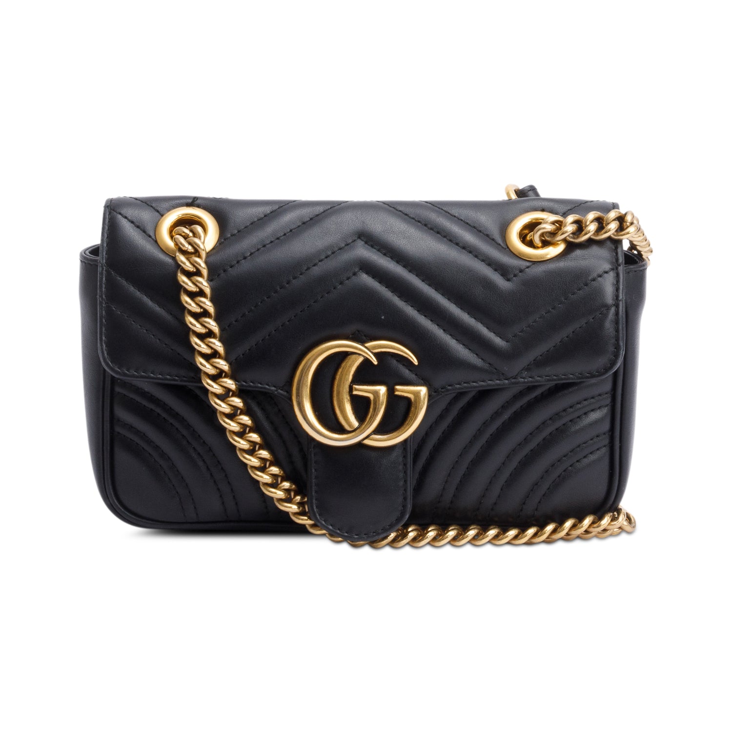Black Calfskin Matelasse GG Marmont Shoulder Bag w/ Box & Card Holder