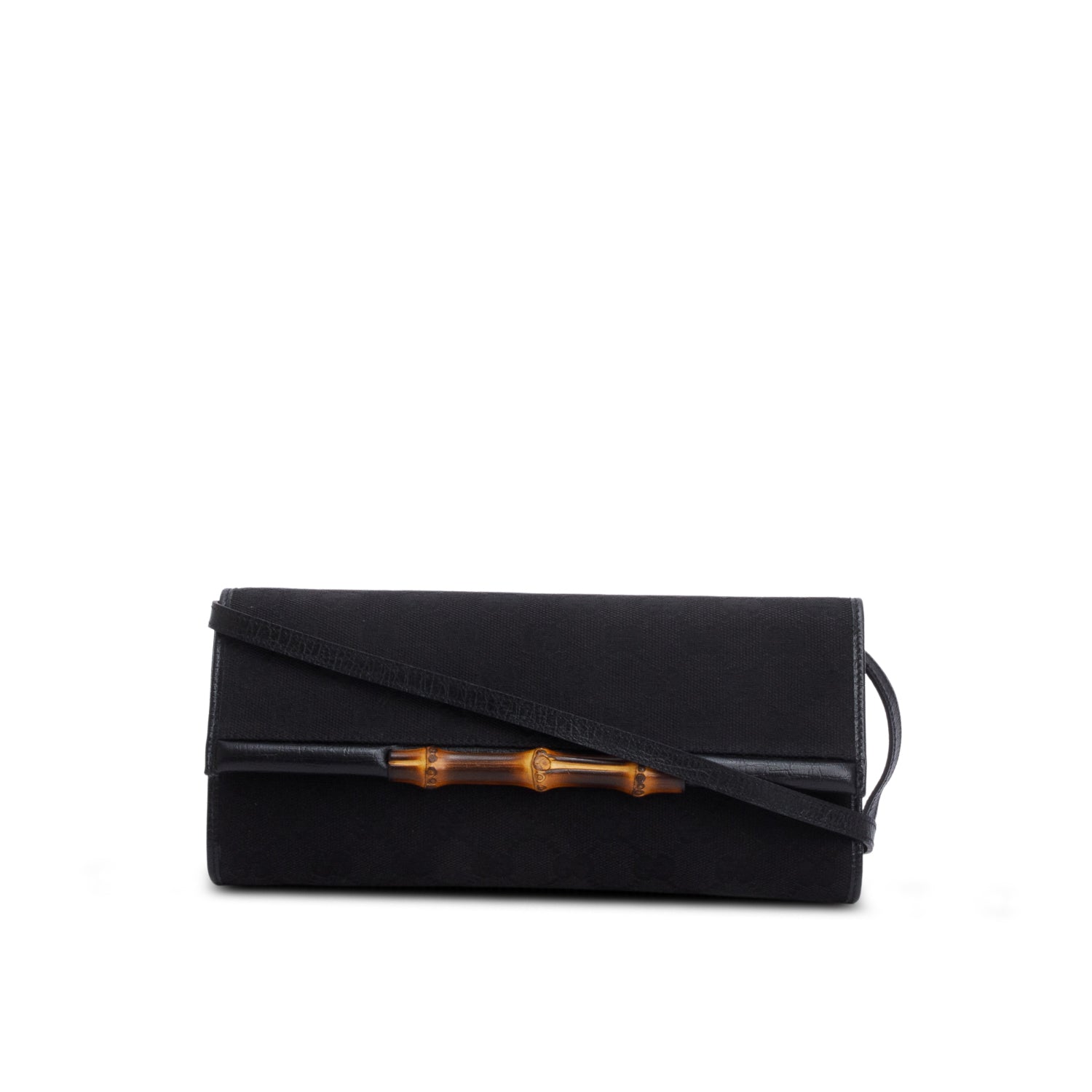 Black GG Canvas Bamboo Clutch Bag w/ Strap