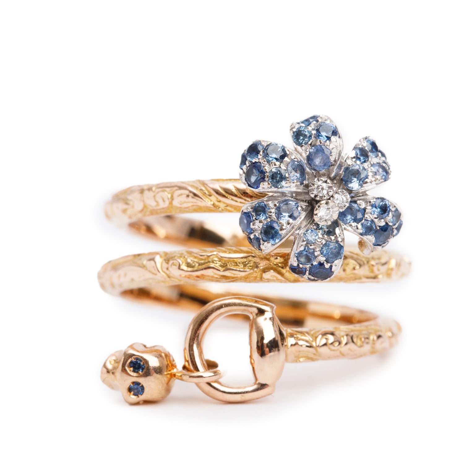 18k Yellow Gold Sapphire & Diamond Flora Ring, Size 11 5.75 w/ Box