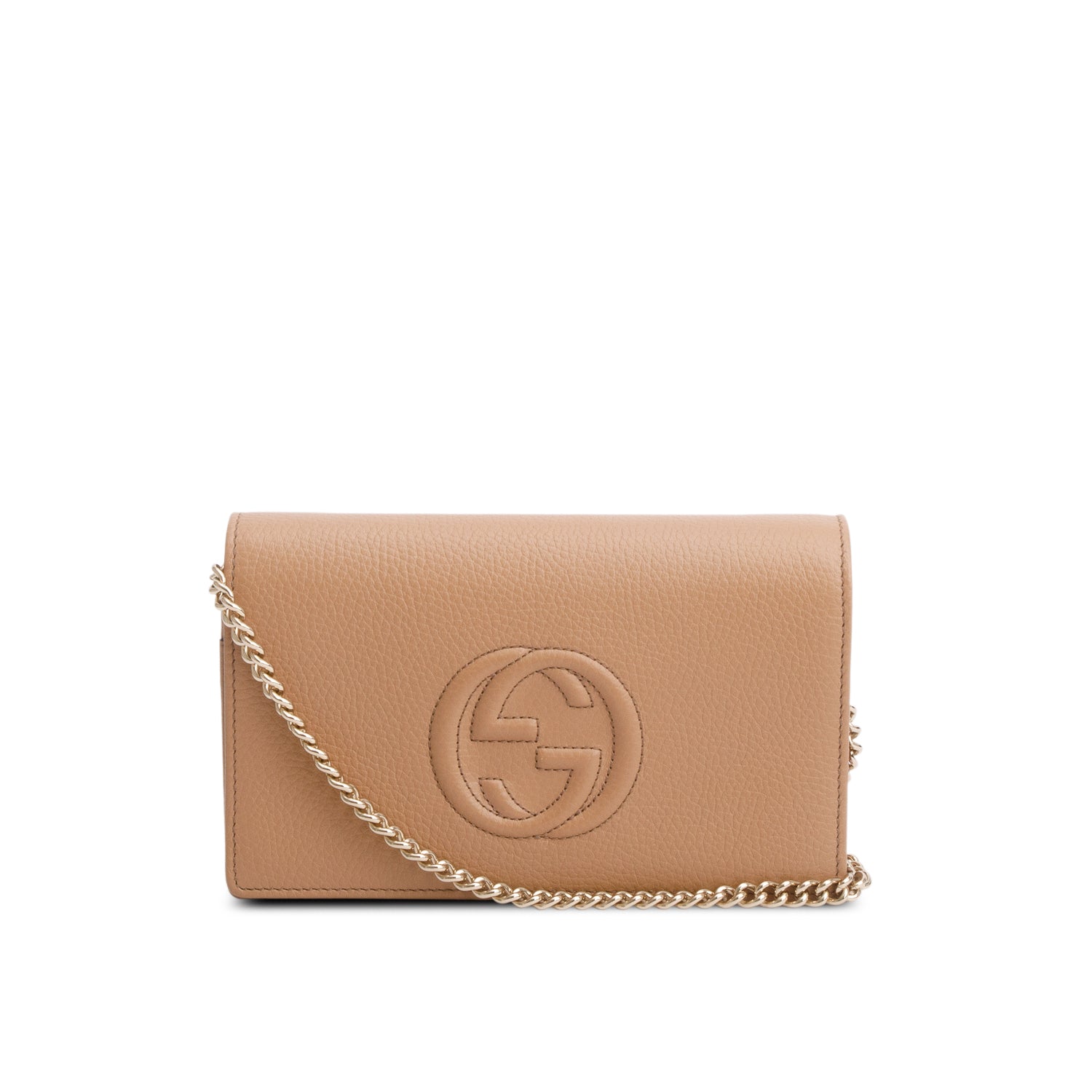 Brown Pebbled Calfskin Soho Wallet on Chain w/ Box