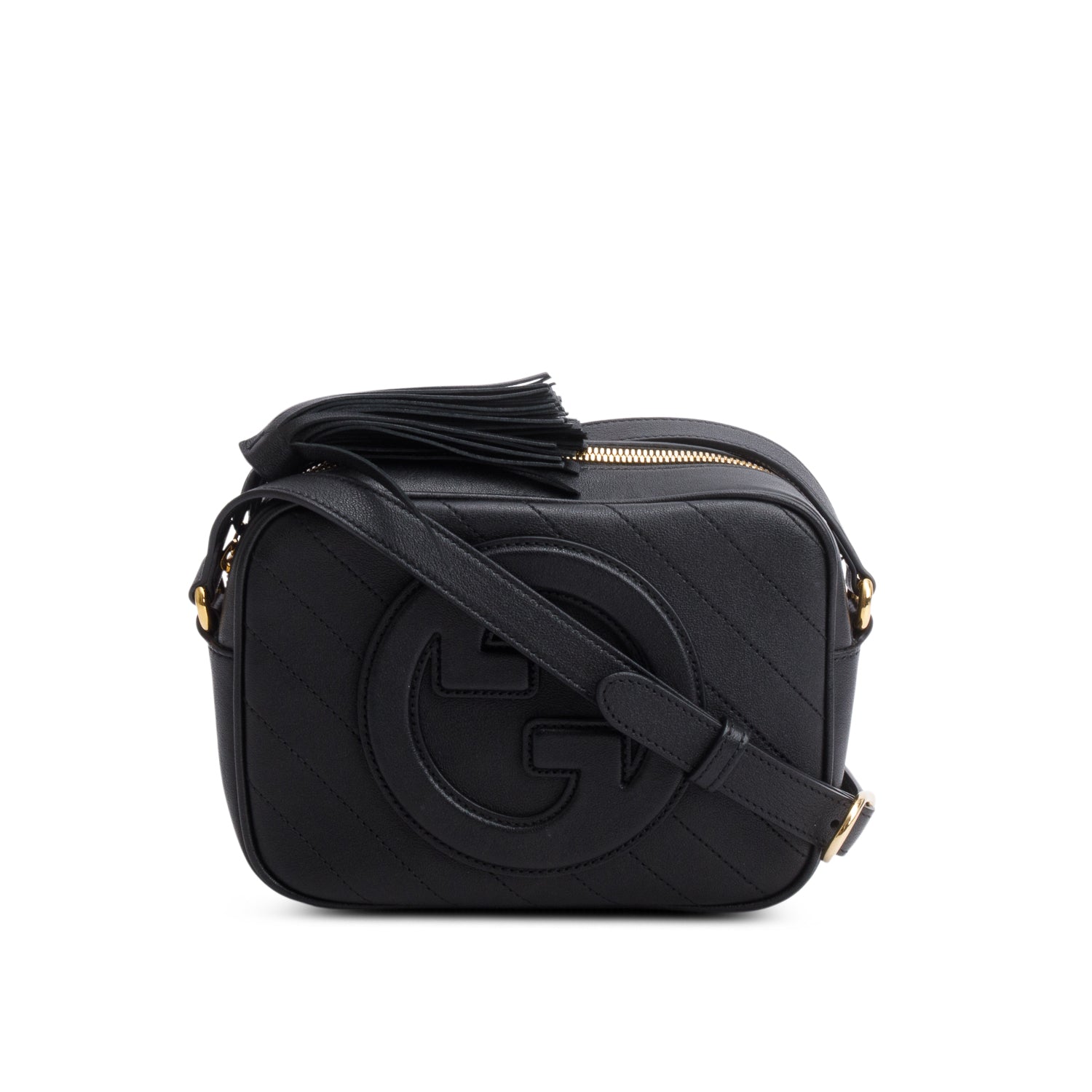 Black Calfskin Diagonal Stitched Small Blondie Shoulder Bag w/ Box