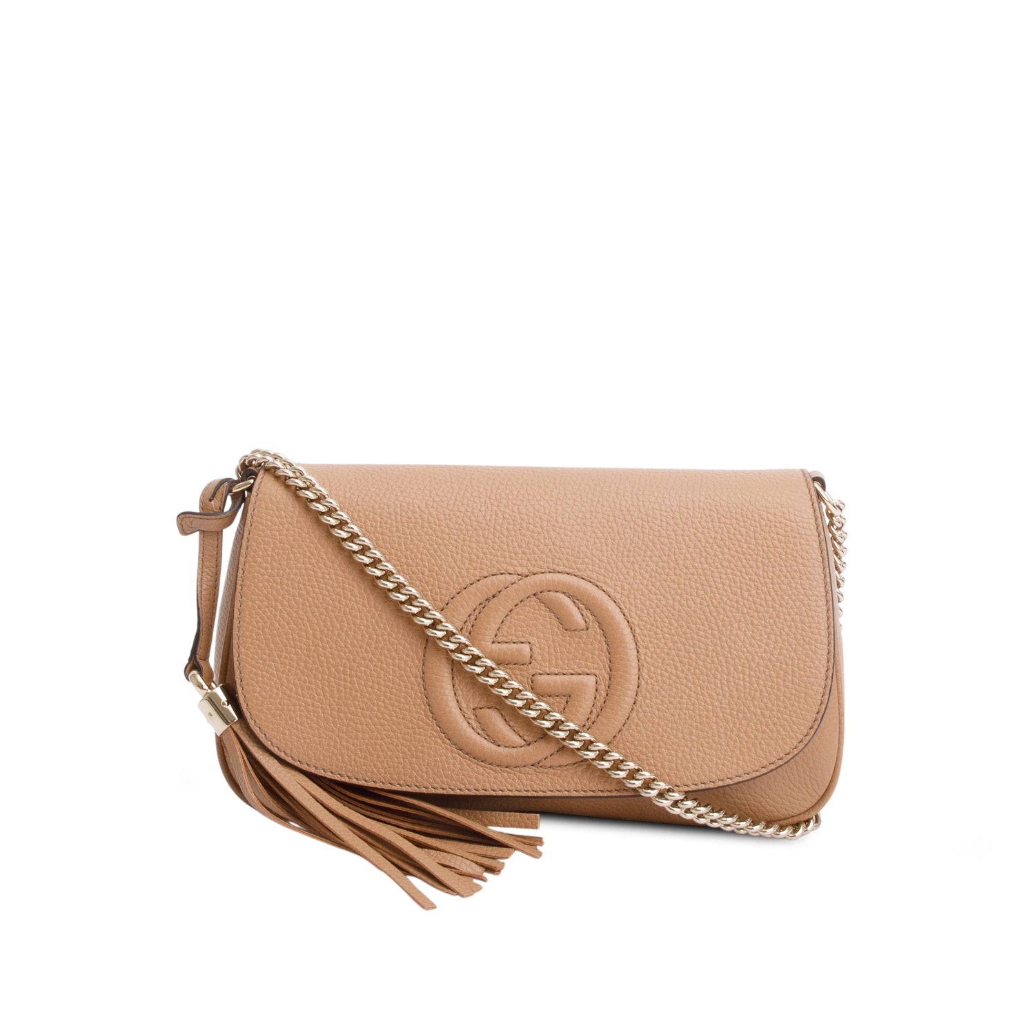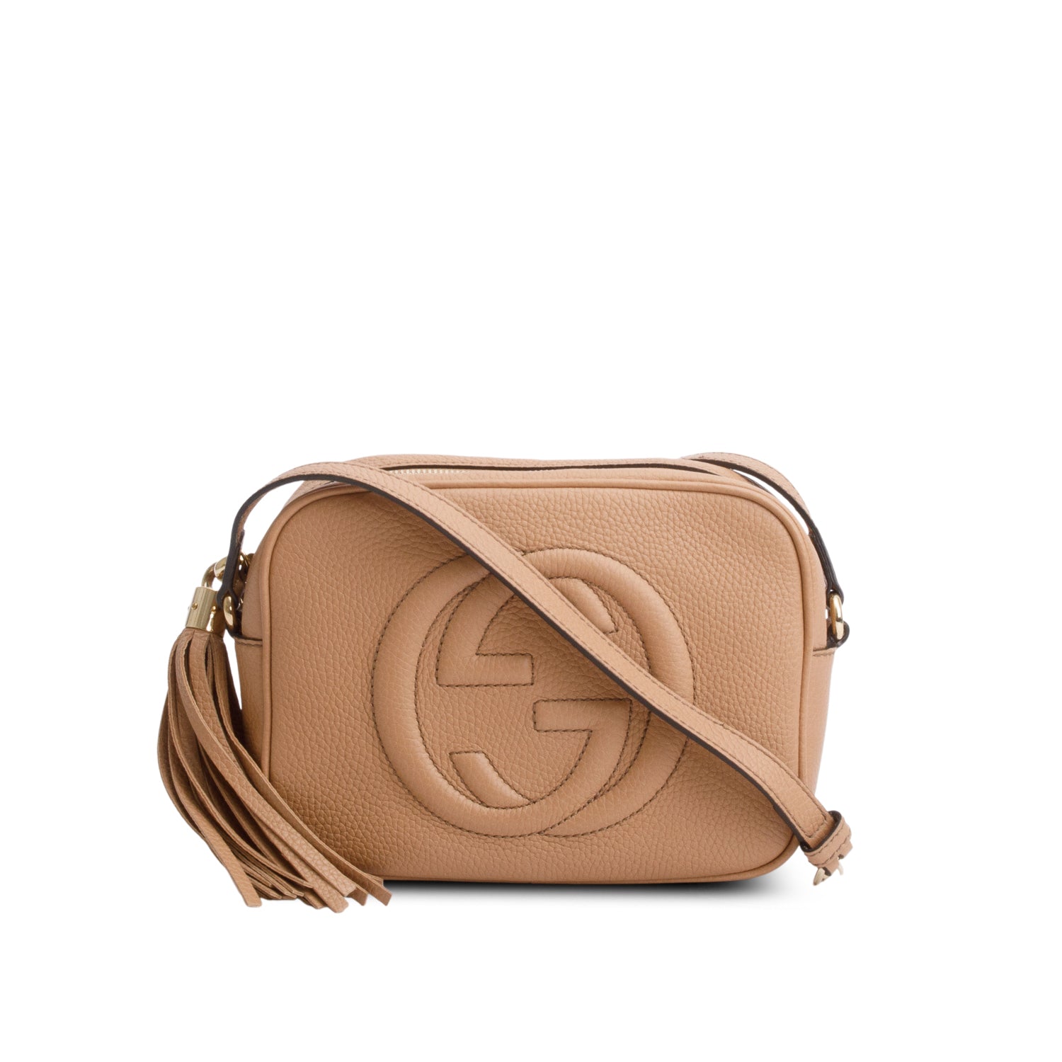 Beige Pebbled Calfskin Leather Small Soho Disco Bag w/ Box