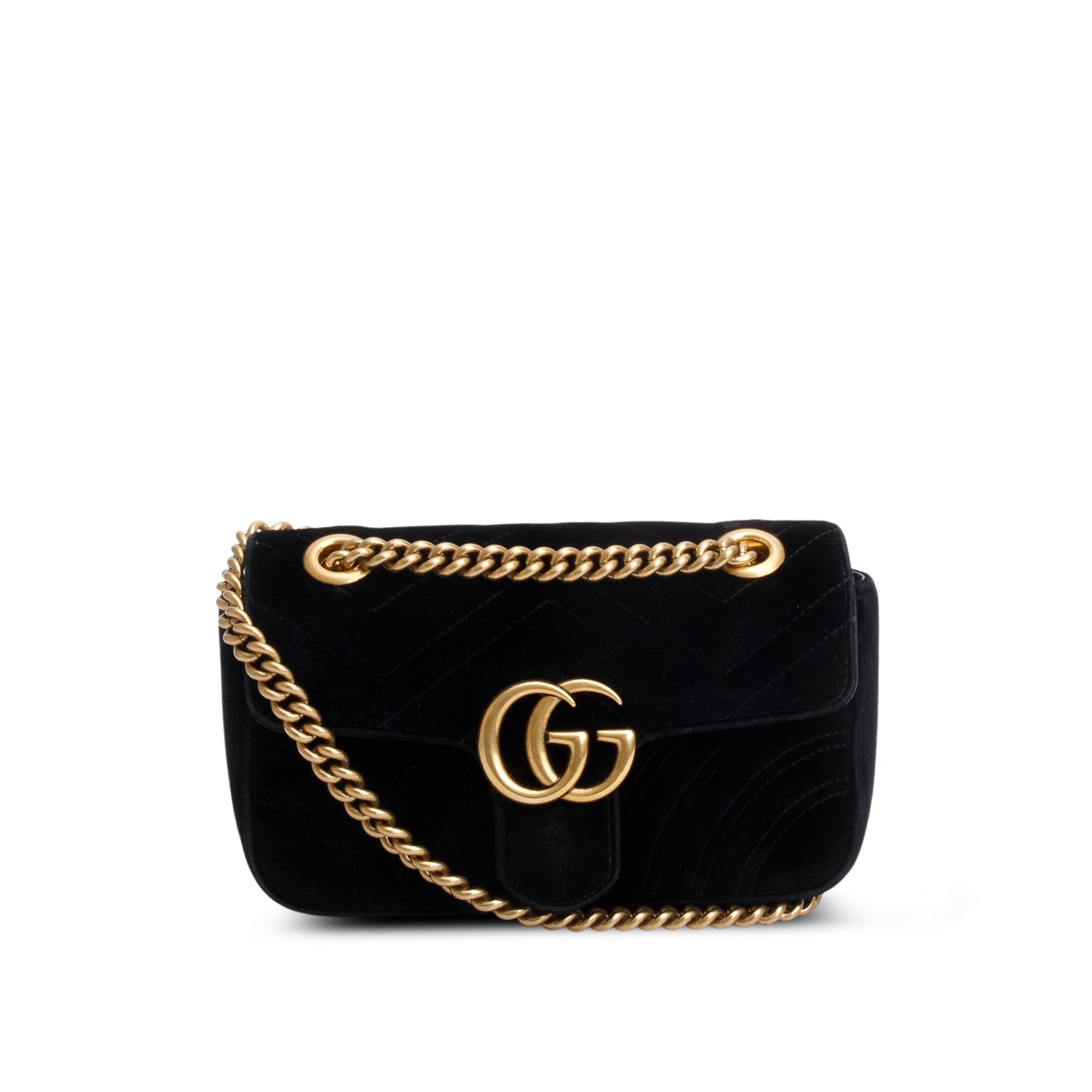 Black Velvet Matelasse Small GG Marmont Shoulder Bag