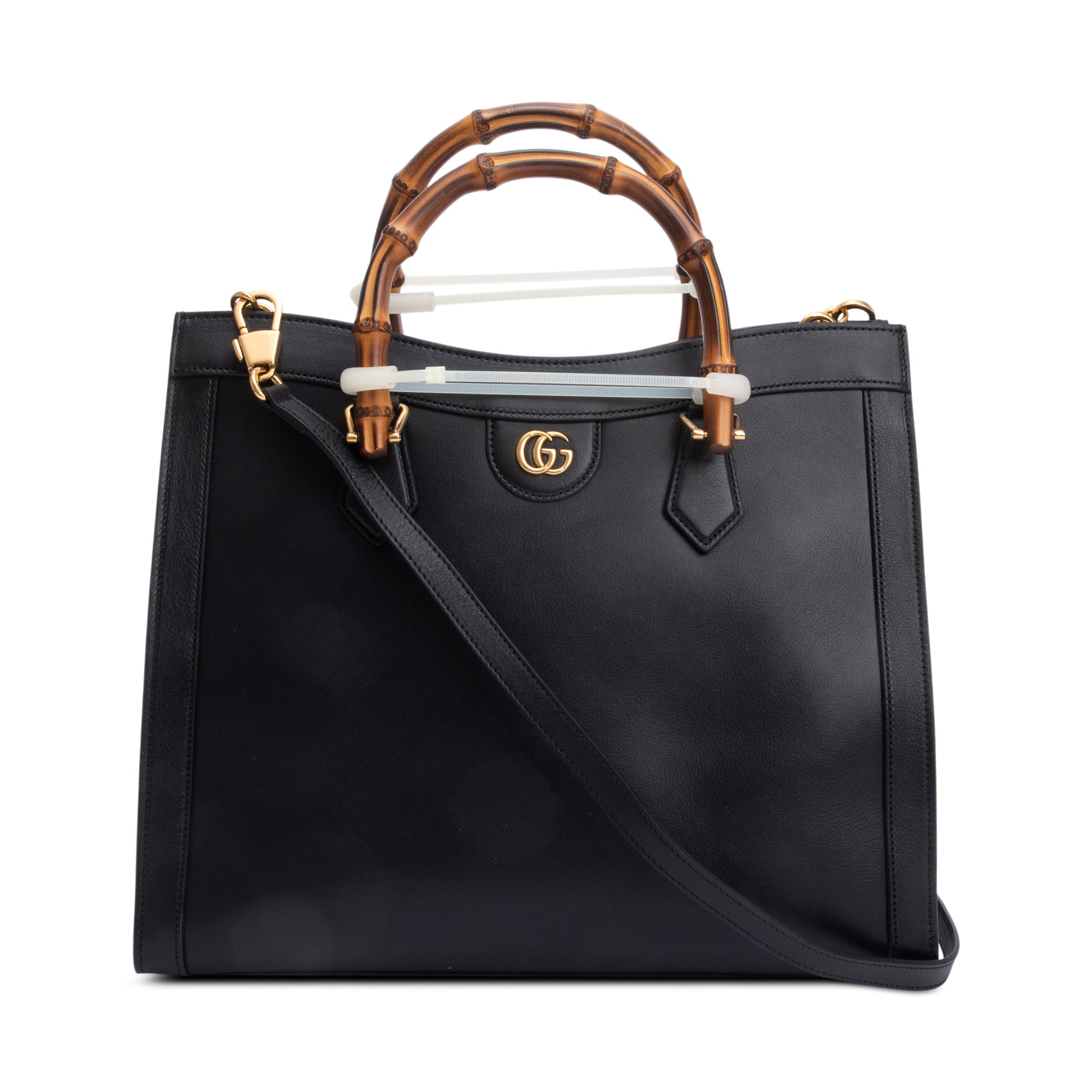 Black Calfskin Leather Large Dionysus Bamboo Top Handle Bag w/ Strap